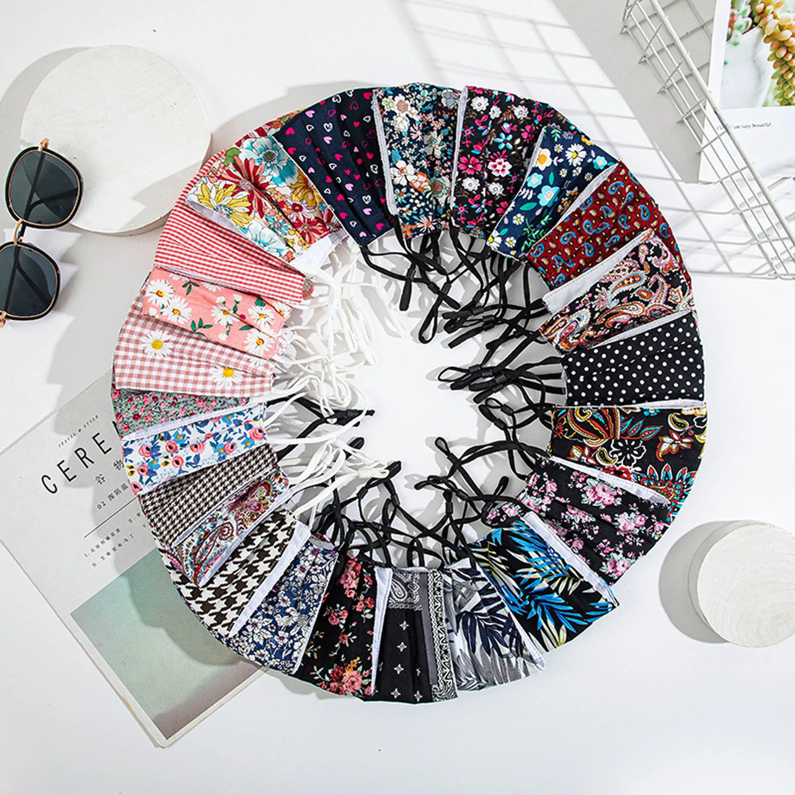 Стирающаяся Регулируемая хлопковая маска для лица с цветочным принт...
