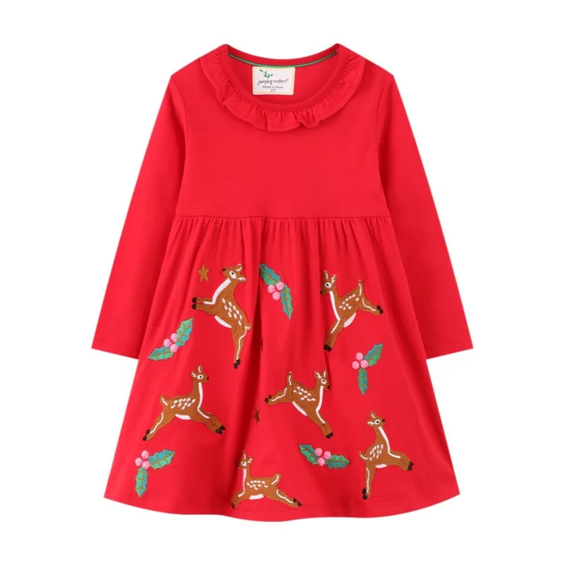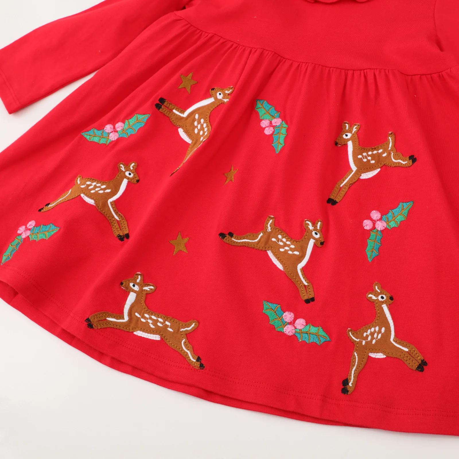 Детское платье с длинным рукавом, круглым вырезом и вышивкой