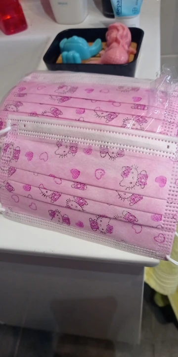 Купила 100штук и в одной пачке были четкие хорошие маски а вот вторая пачка была браком это значить что там были некоторые черно белые хелло китти ,розовые, и без хелло китти но с сердечками советую маски но половину пачки масок пришлось просто выкинуть
