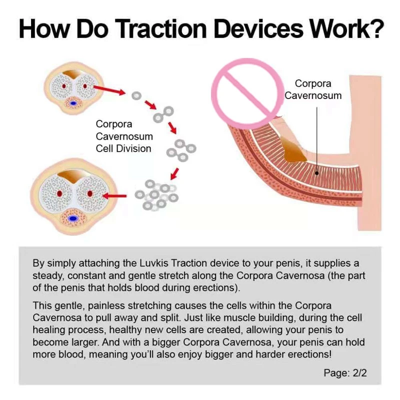 Как работают устройства? Представляем себе тренажер для веса, поднимающий вес. Так как он делает это, с постепенно тяжелее веса, он тянется и тренирует мышц он подъема с. Это приводит к появлению небольших микро-разрывов и повторений клеток вдоль мышцы. По мере роста мышц он становится больше, тверже и держит больше крови, так как становится больше. Устройства для тяги пениса работают аналогично. Просто прикрепляя тяговое устройство к вашему пенису, оно обеспечивает стабильное, постоянное и нежное растяжение вдоль телесной кавемосы (часть пениса, которая удерживает боллд во время эрекций). Это нежное, безболезненное растяжение приводит к тому, что клетки внутри телесной кафемозы оттягиваются и разделяются. Просто связывайте мышечное строительство, во время процесса заживления клеток создаются здоровые новые клетки, позволяя вашему пенису стать больше. И с большим телесным кавемосом, ваш пенис может держать больше крови, что означает, что вы также будете наслаждаться большими и более жесткими эрекциями!