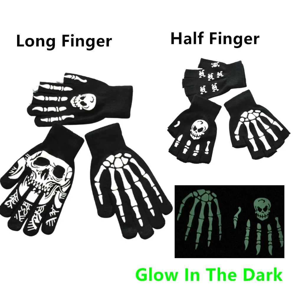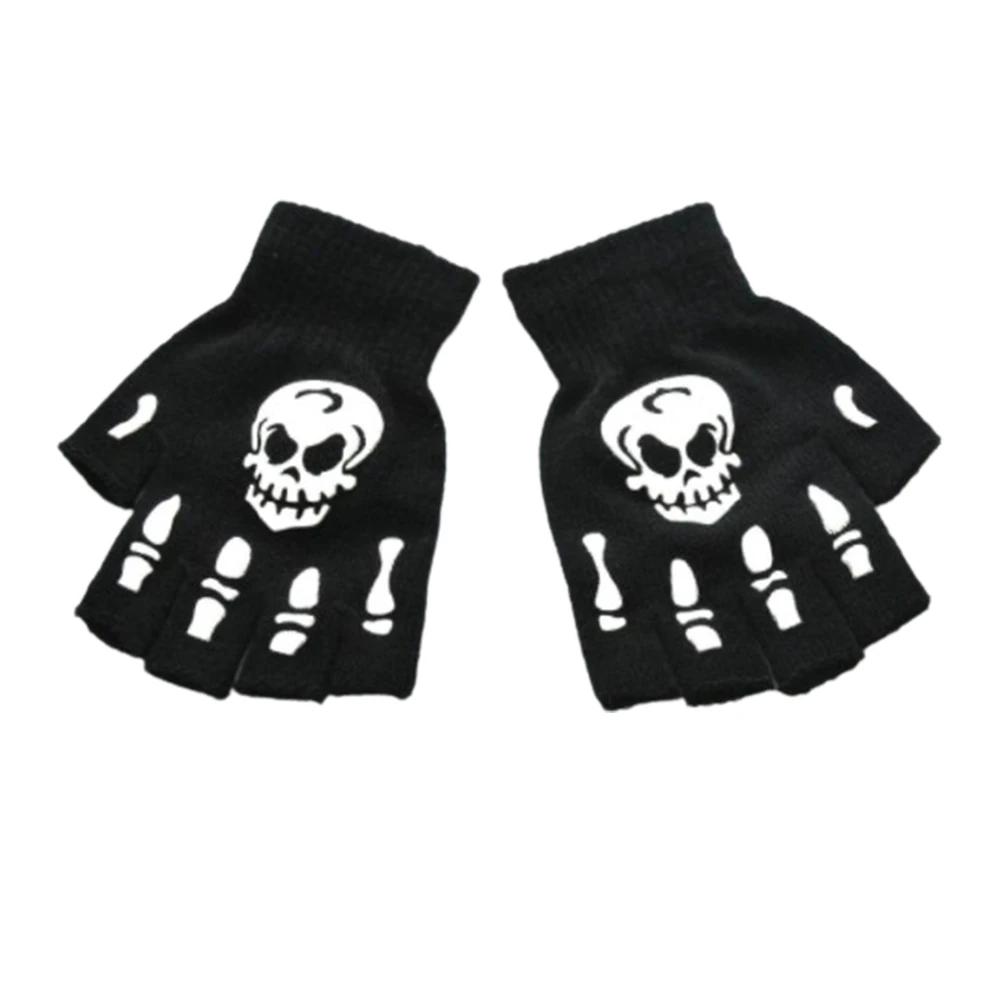 Хэллоуин украшение Скелет Череп Половина Пальца Перчатки раньше унисекс без пальцев стрейч трикотажные зимние варежки