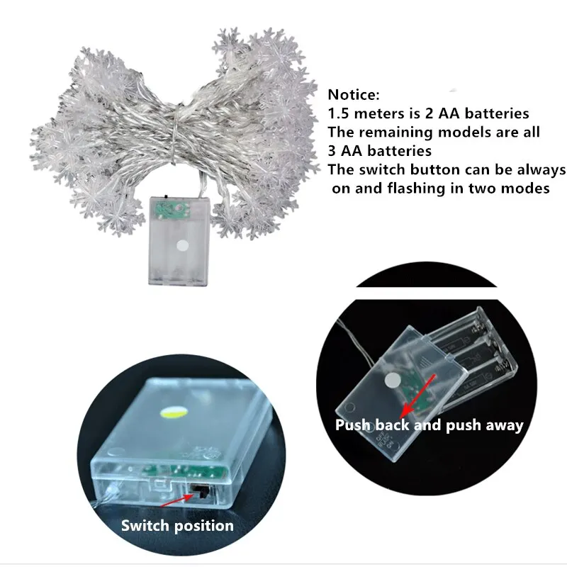 1. [мини-Снежинка] светильник на батарейках имеет разные цвета, и каждая гирлянда Снежинка светильник s отличается, что делает каждый светильник похожим на маленький праздничный мир.