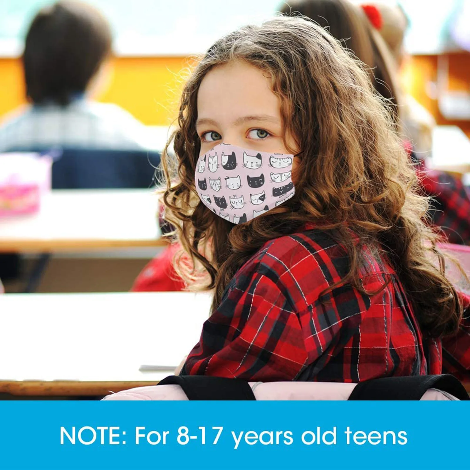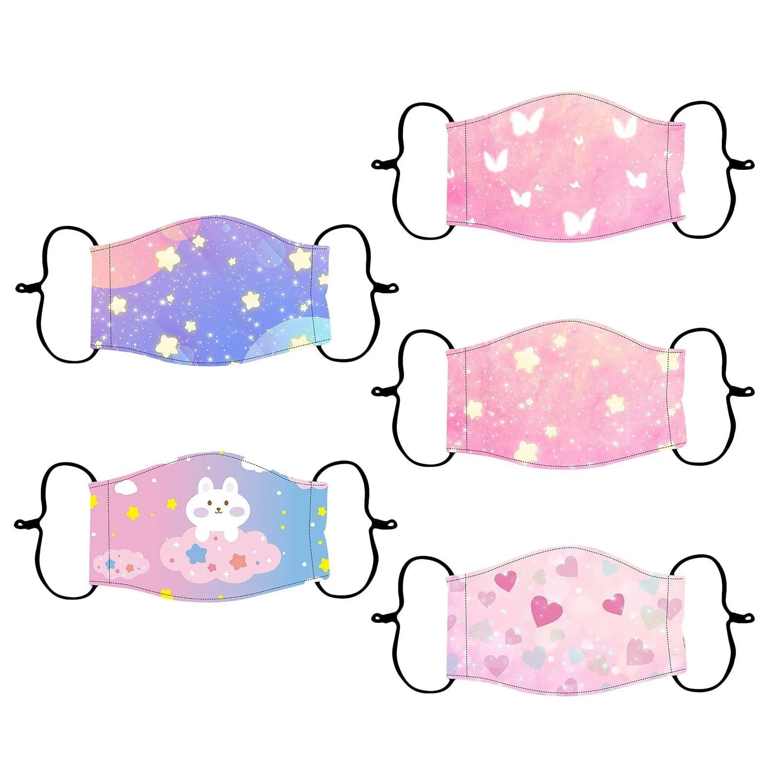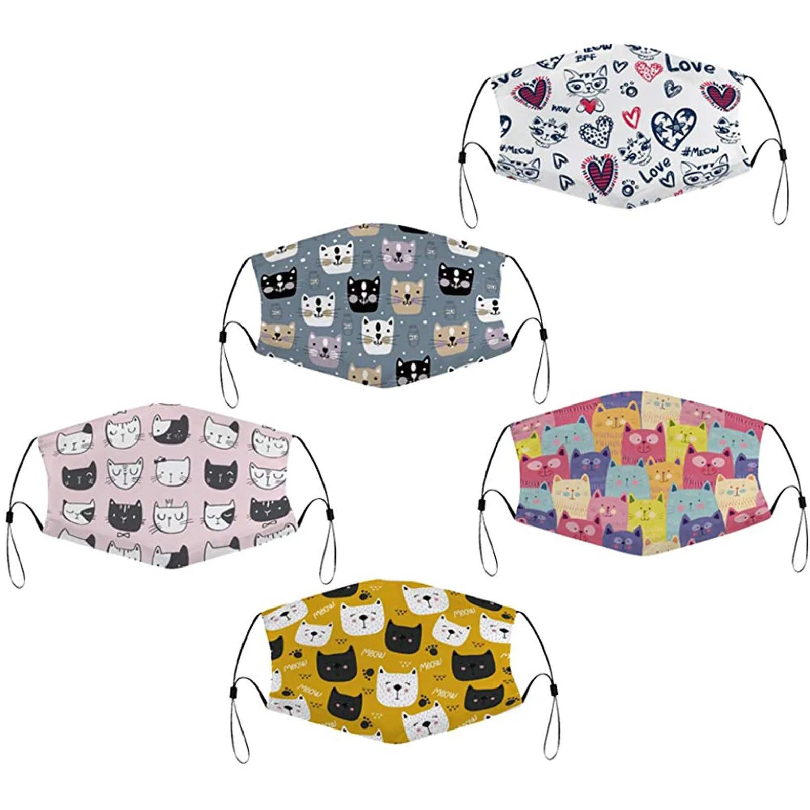 [Примечание] только этот продуктДля подростков 8-17 лет, не подходит для малышей. 5 шт. уникальная Повседневная тканьМаски для лица с милым рисунком. Для ежедневного использования в школе.