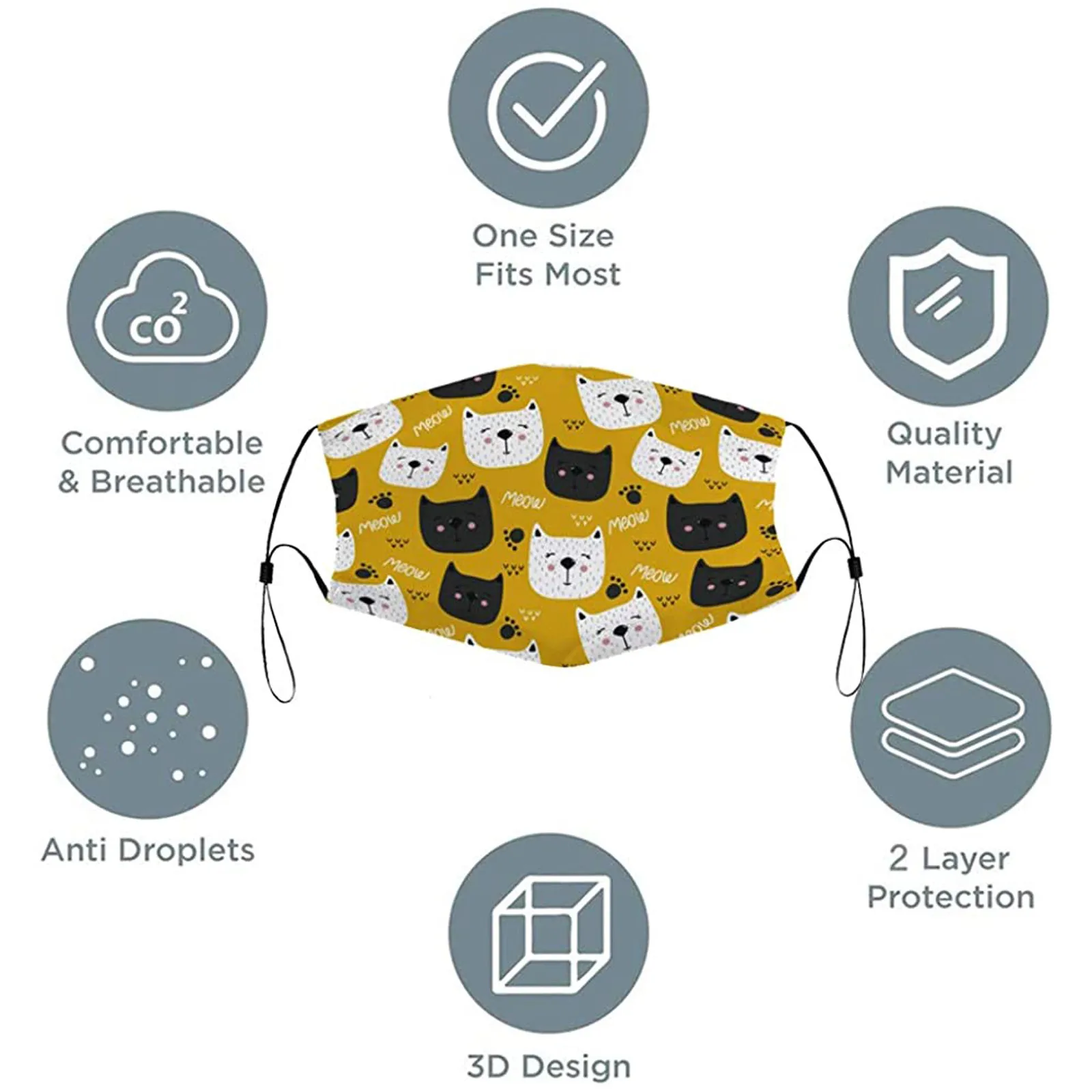 Регулируемые ремешки для ушей:Детские размеры, регулируемые петли для ушей и подходят для большинства детей. НашиМаски вокруг лица для лучшего комфорта и посадки.