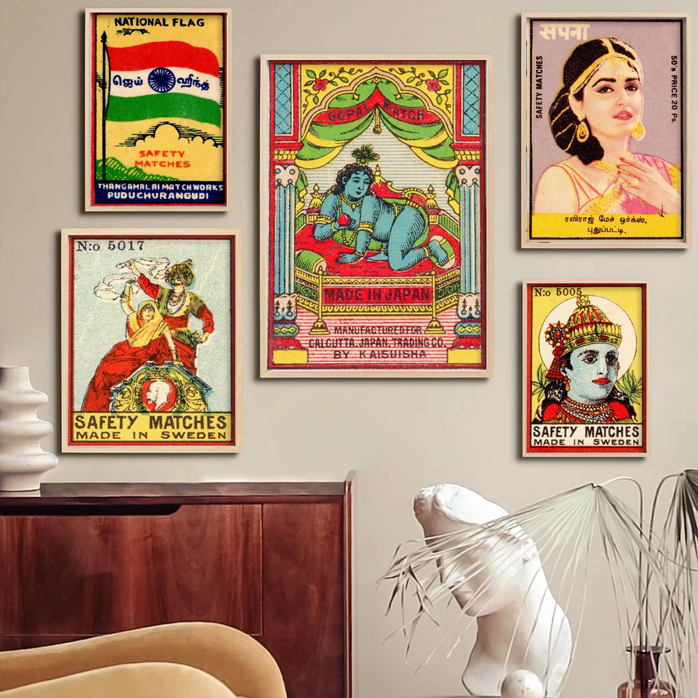 Свечи спичечные коробки печать индийская стена искусство винтажное ...