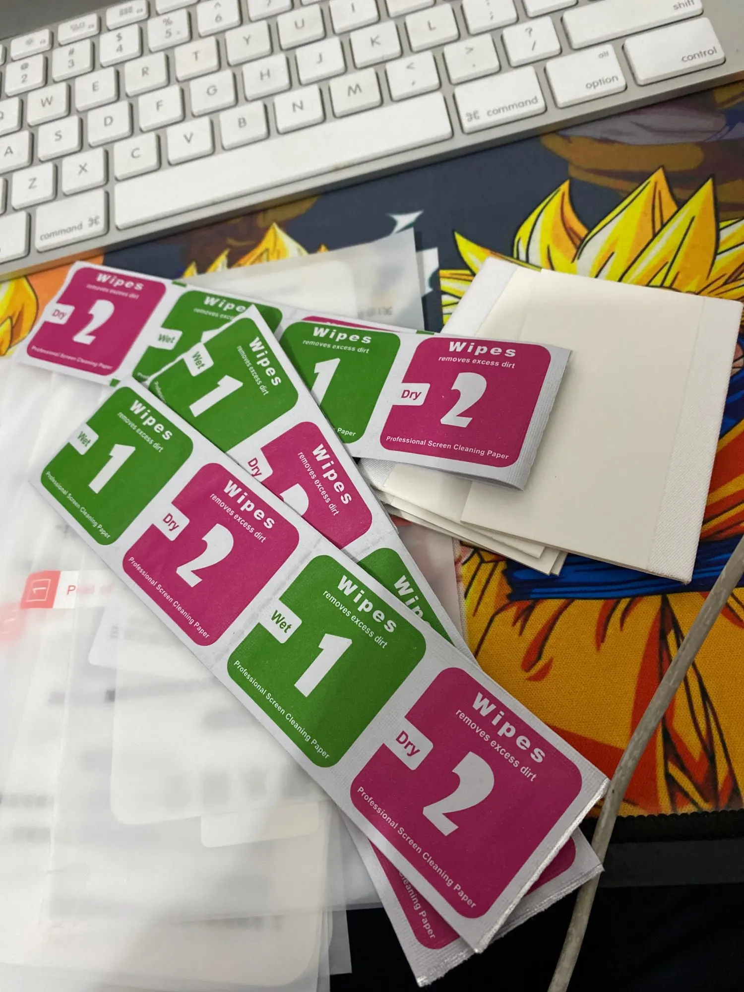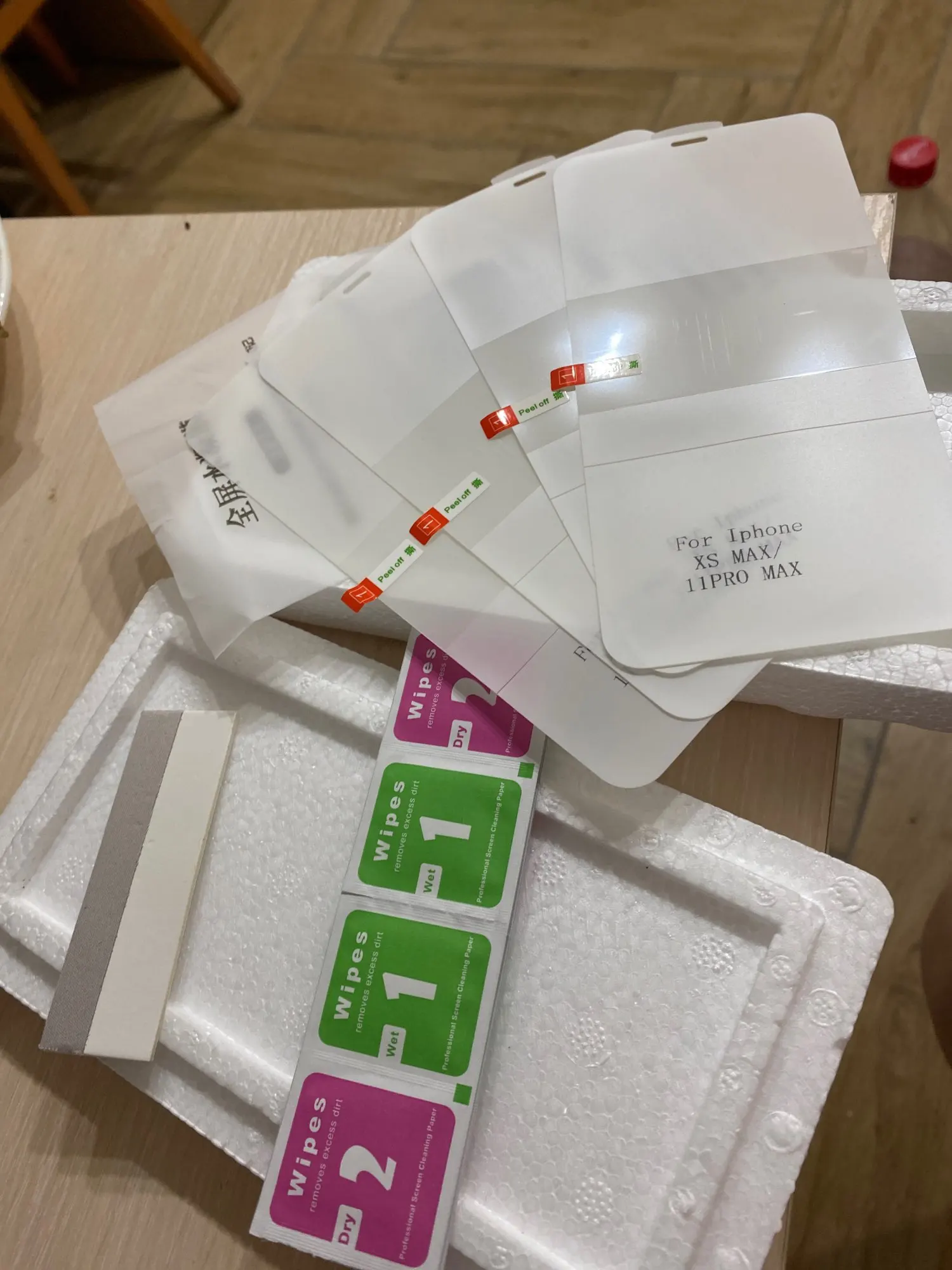 Закрывает не всё стекло как написано в описании. Пленки очень тонкие!!! В комплекте нет липучек для пыли. Упаковка как всегда. Дошло в м о. Быстро.