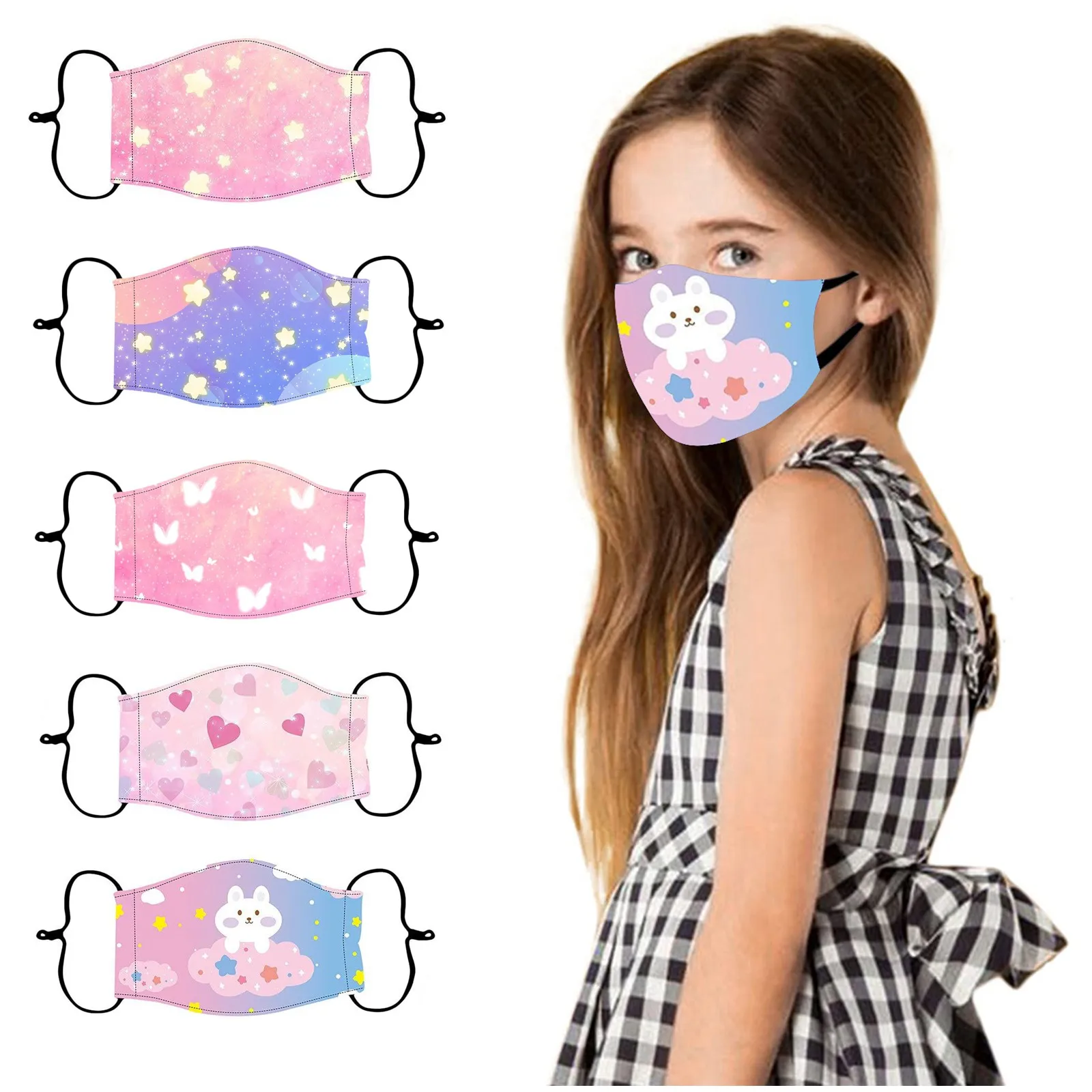 5 шт. многоразовые маски для лица, стирающиеся регулируемые детские...