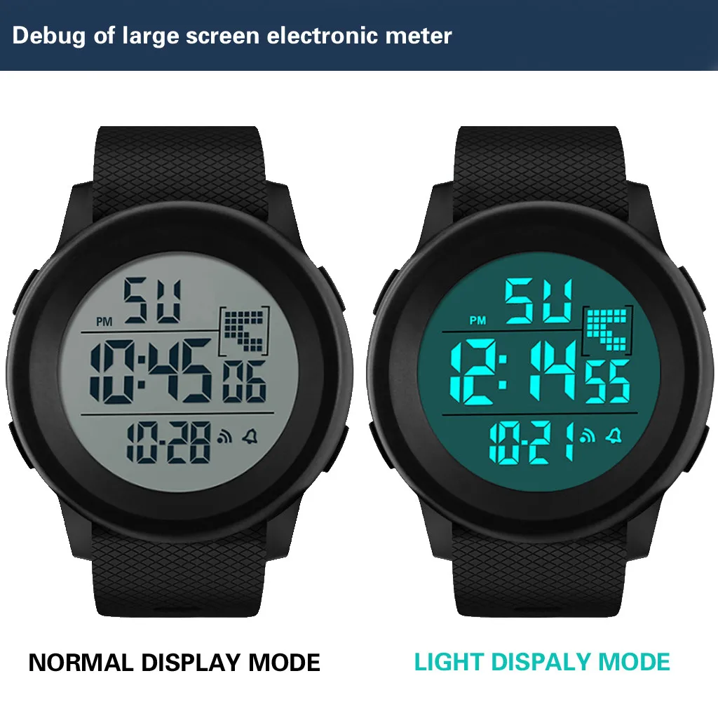 Часы наручные мужские электронные, спортивные удобные светодиодные с силиконовым ремешком, в стиле милитари, многофункциональный дизайн