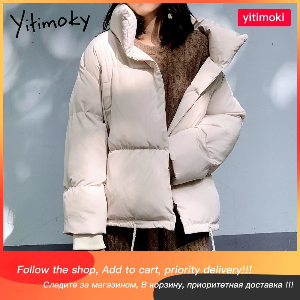 Пуховик Yitimoky женский с воротником-стойкой, теплая черная куртка, модная зимняя плотная одежда в Корейском стиле, короткие пальто с карманами