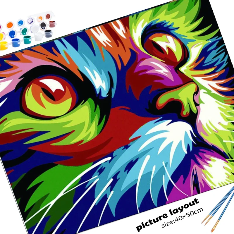Картины по номерам, животные, кошка, подарок, Diy масляная краска п...