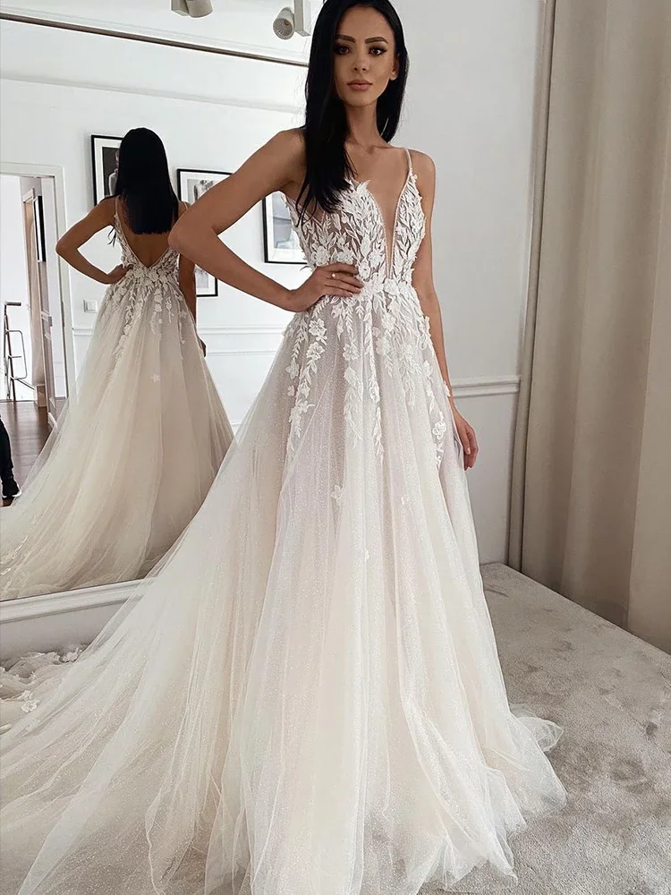 Женское свадебное платье на тонких бретельках, с глубоким V-образны...