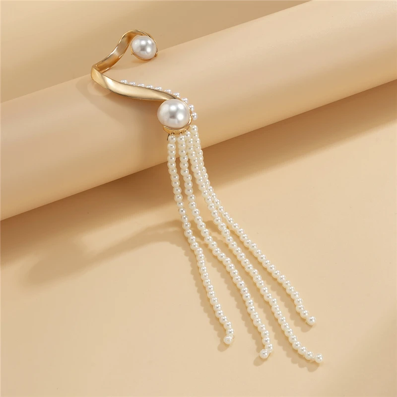 Серьги-клипсы с имитацией жемчуга, не пирсинг в винтажном стиле, длинные серьги на манжетах, для имитации кости уха, поддельные украшения для женщин, 1 шт.