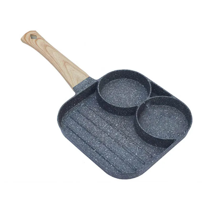 2 отверстия, жареное яйцо, сковорода для бургеров, антипригарная ветчина, блинная машина, деревянная ручка, подходит для газовой плиты и индукционной плиты