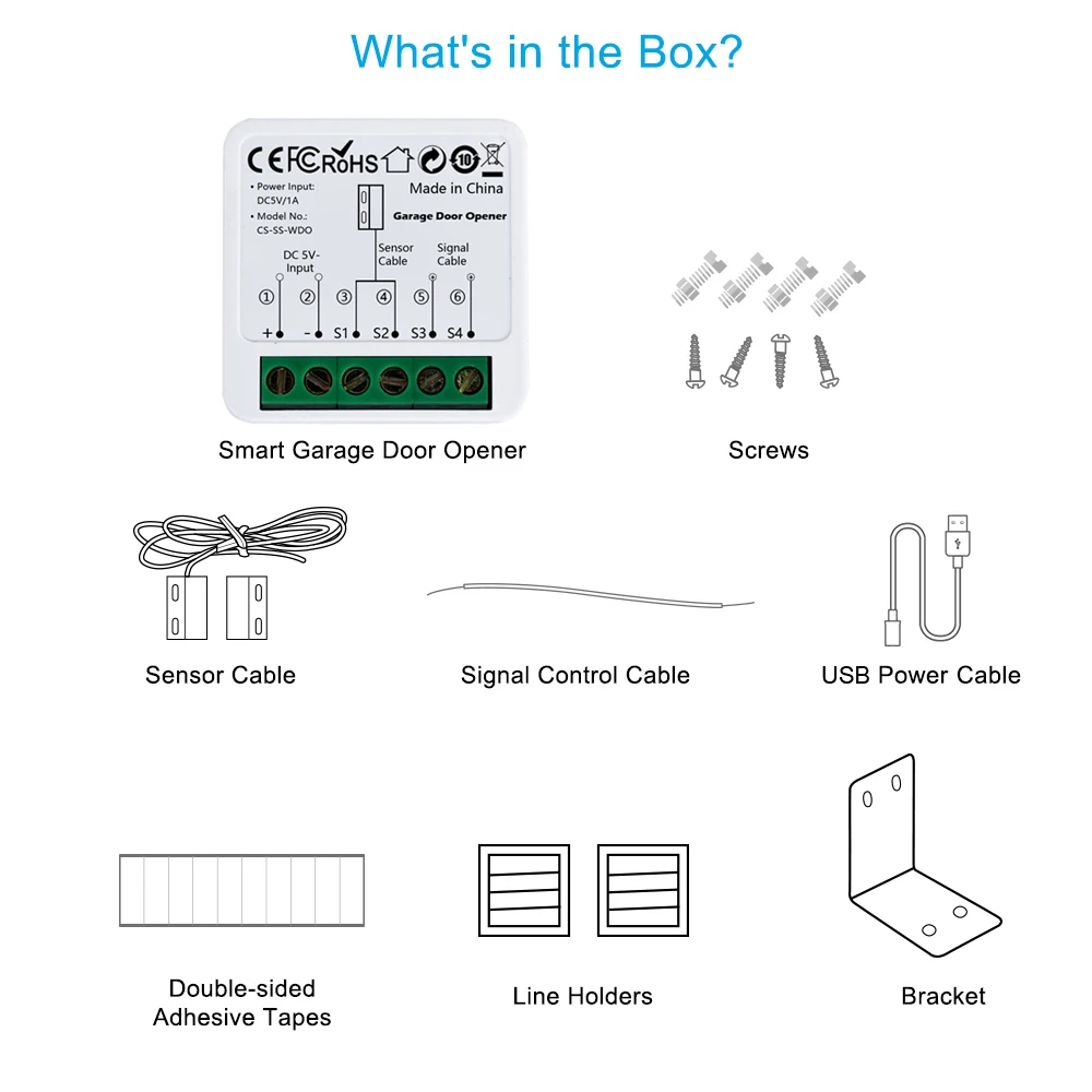 CS-SS-WDO умный контроллер гаража был проверен CE/FCC/RoHS, CE сертификат номер: DL-2020125402C. Если вам нужен отчет о тестировании CE/FCC/RoHS, декларации о соответствии технических описаний или другой информации, пожалуйста, свяжитесь с нами.
