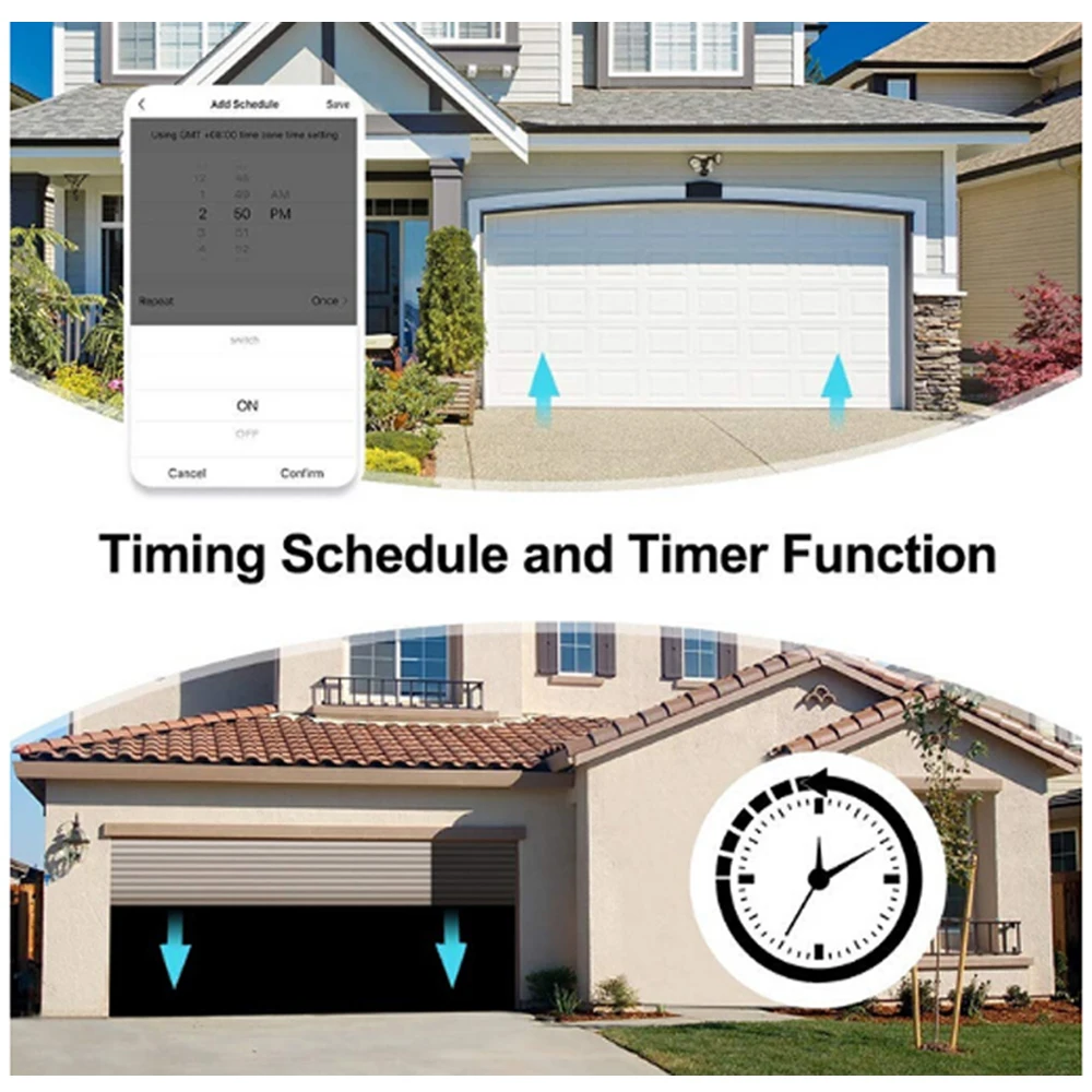 Откройте или закройте гараж с помощью расписания или обратного отсчета. Автоматически определяет состояние гаражной двери более безопасным без ложного хода.