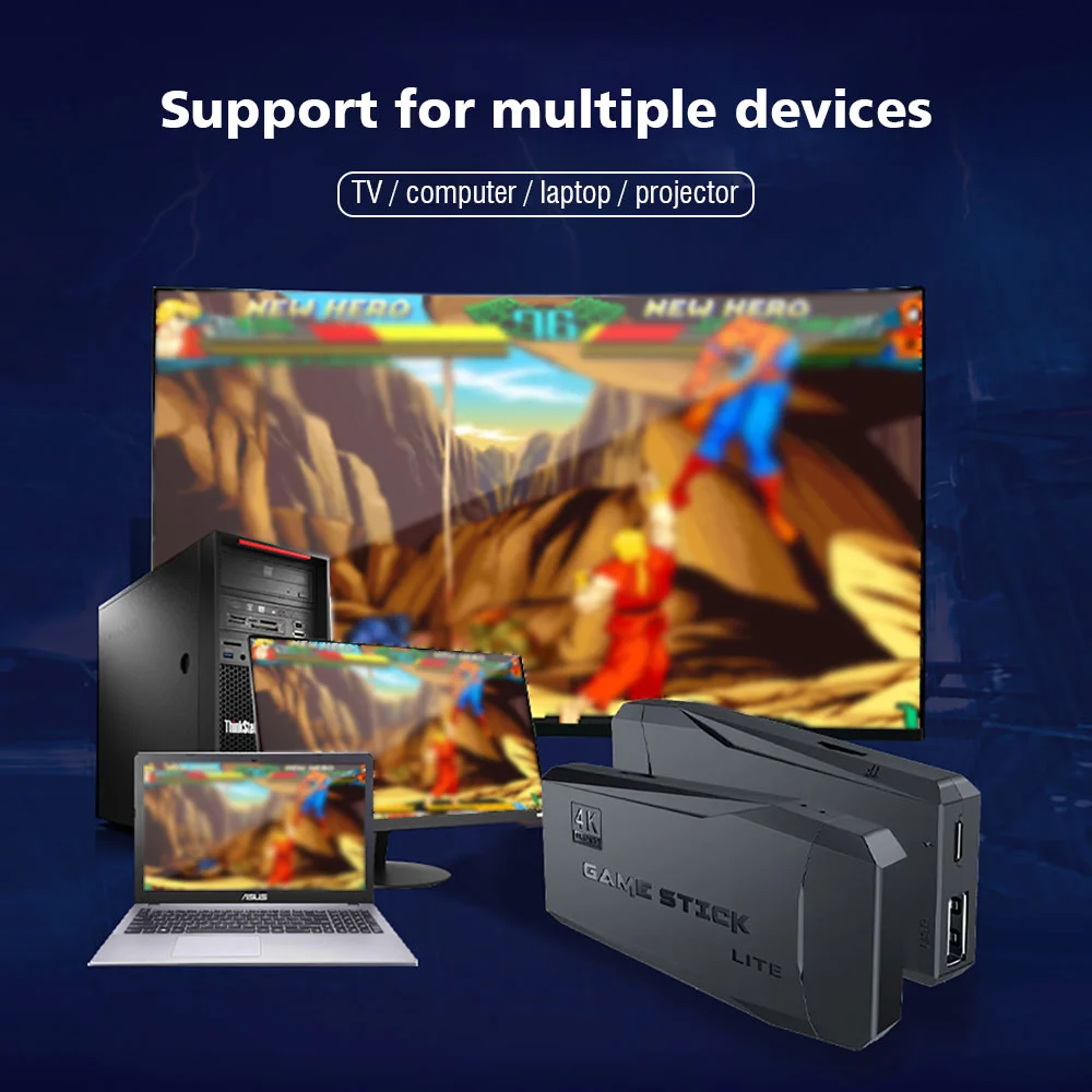 Эта Игровая приставка подходит для 4K Ultra High Definition TV/monitores/проекторов, поддерживает HDMI соединение (не AV выход), качество изображения 1080P HD, вы можете наслаждаться яркими и захватывающими видеоиграми на большом экране.
