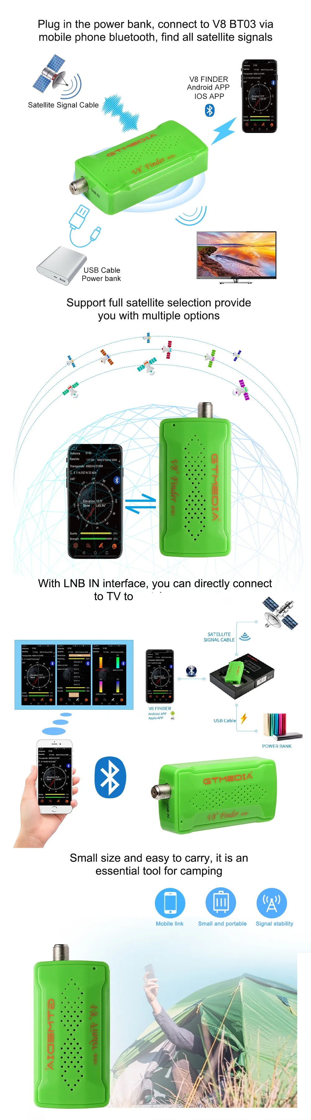 Спутниковый ресивер GTMEDIA V8 BT03, устройство для измерения яркости для Android и IOS версий смартфона, BT, HD, спутниковый приемник Satfinder
