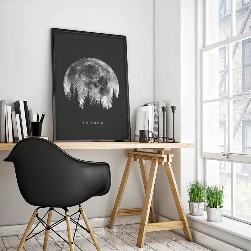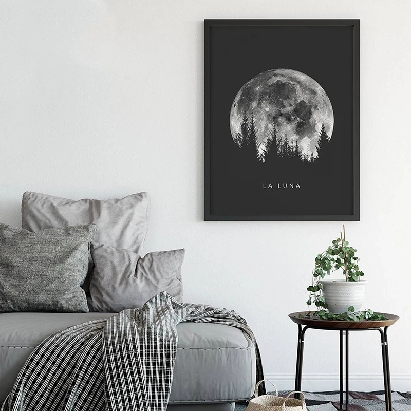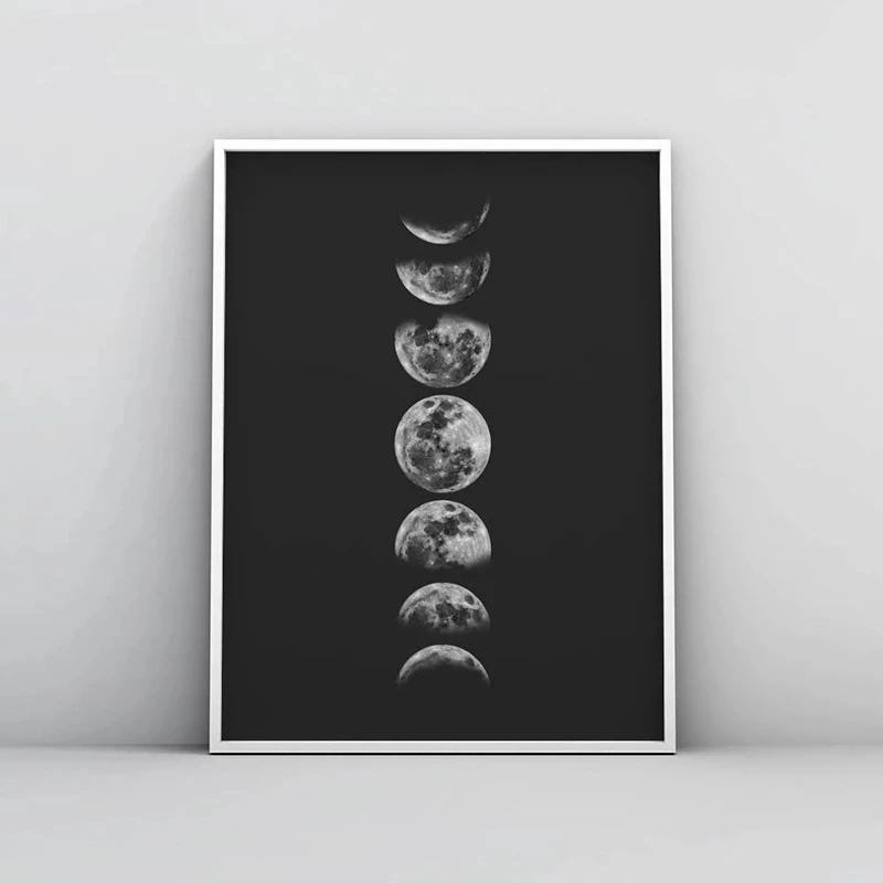 Минималистичная полная луна черная луна фазы солнечная система Картина на холсте плакаты и принты Настенная картина для гостиной домашний декор