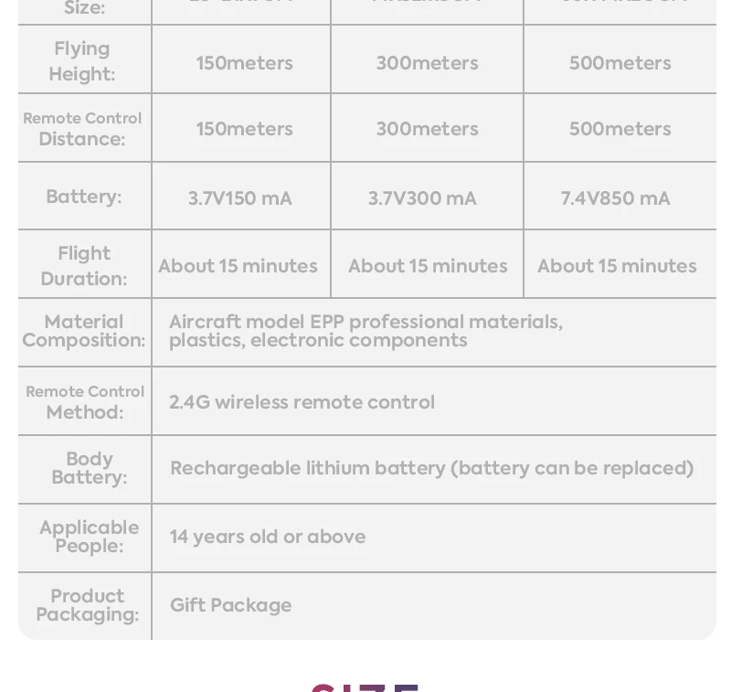 A specification attributesAbout remote control distance is 150 m, flight level 200 m
