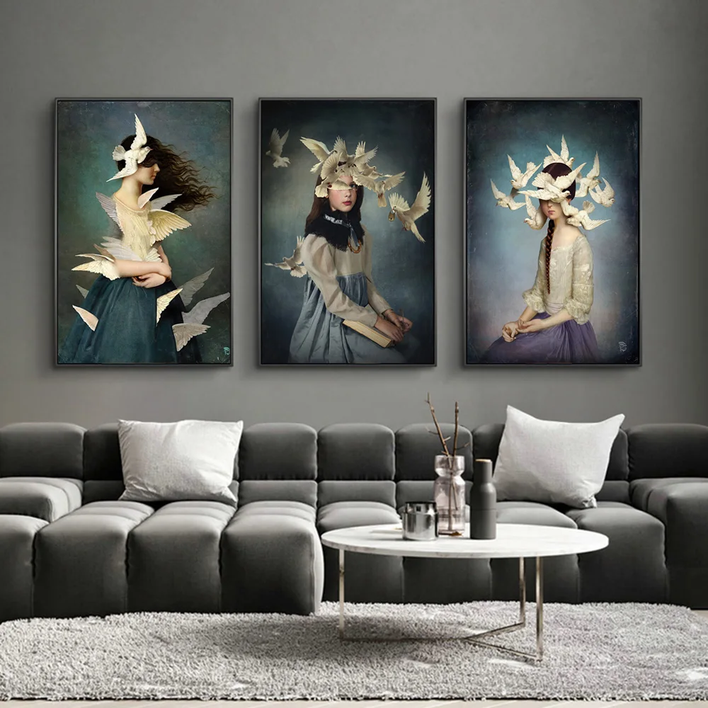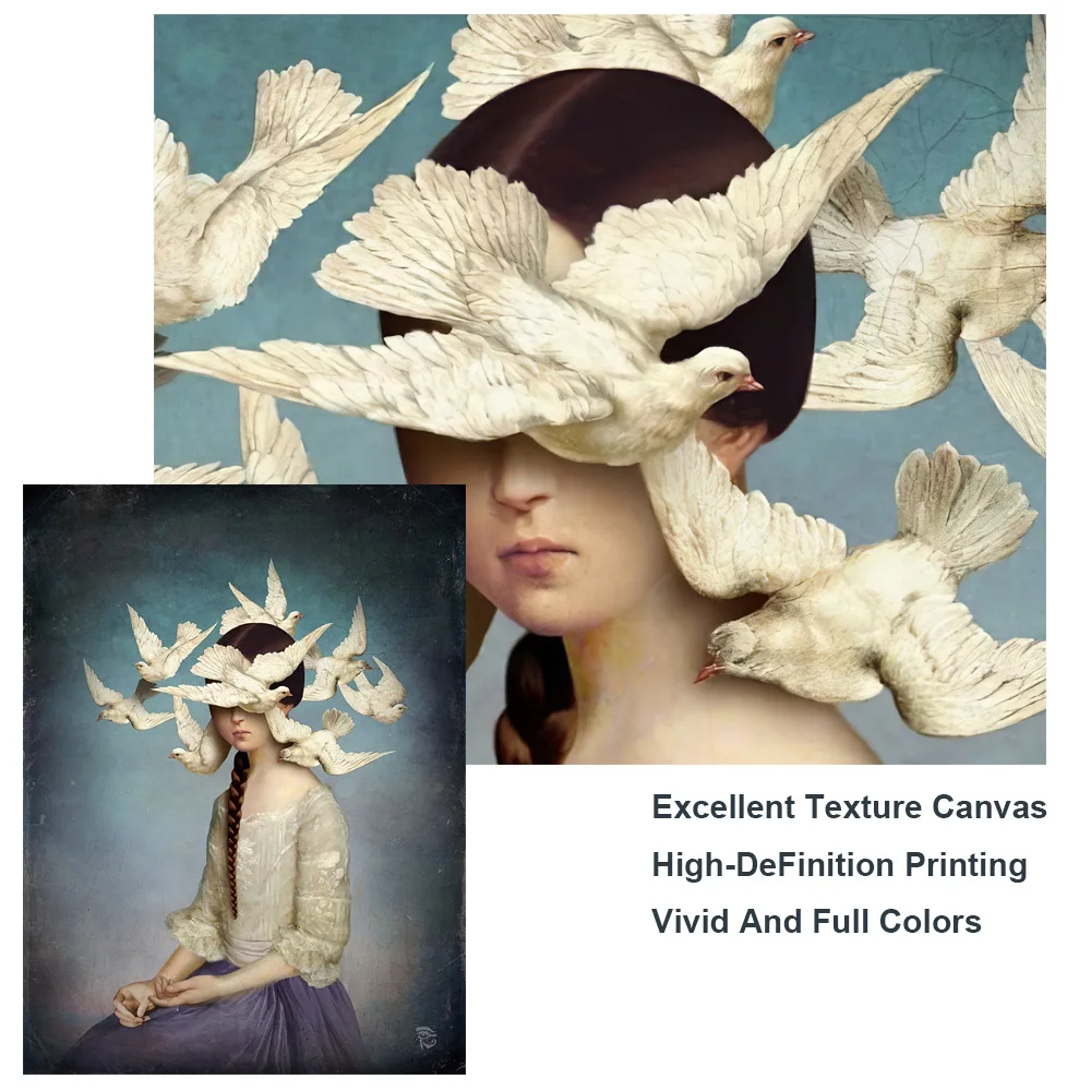 Голубки мира окружает девушка сюрреалистичность холст настенные картины художественные плакаты и принты классический Декор фотографии куадро