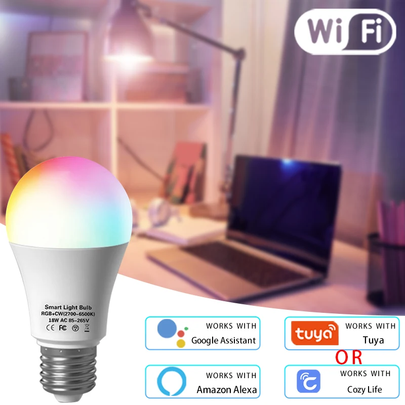 Умная Светодиодная лампа с Wi-Fi, E27, 85-265 в