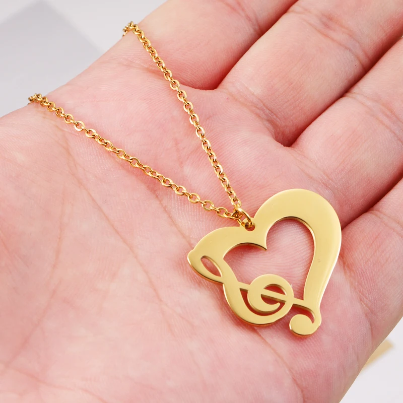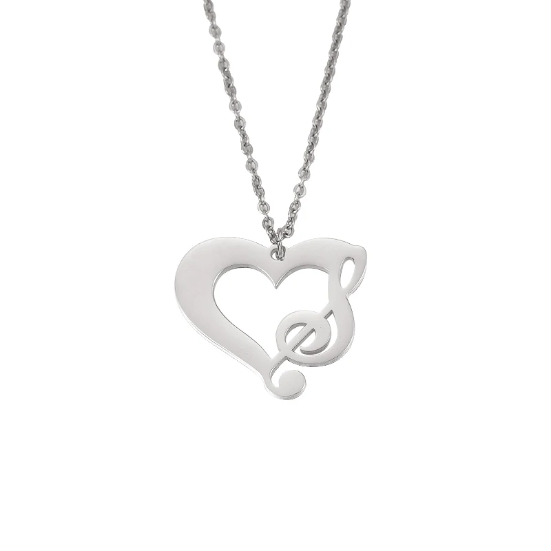 Fnixtar, 20 шт., ожерелья с подвеской в виде сердца с зеркальной полировкой, с музыкальной ноткой, цепочка из нержавеющей стали, ожерелья для женщин и мужчин