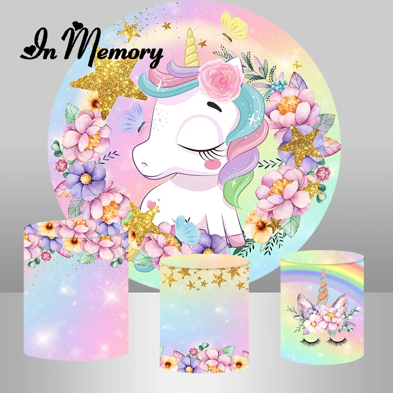 InMemory цветы милый детский Единорог вечерние НКА круглый фон Обложка Радужный цвет блестящие золотые звезды для девочек на 1-й день рождения