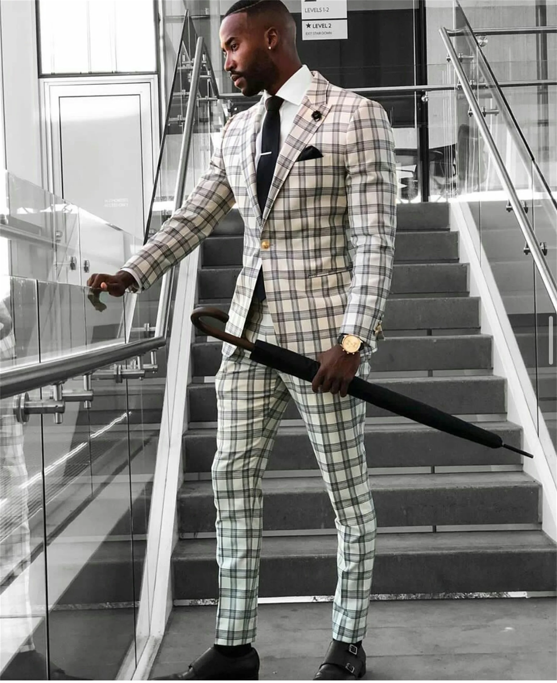 Новейшие деловые костюмы в клетку, мужские костюмы из 2-х предметов...