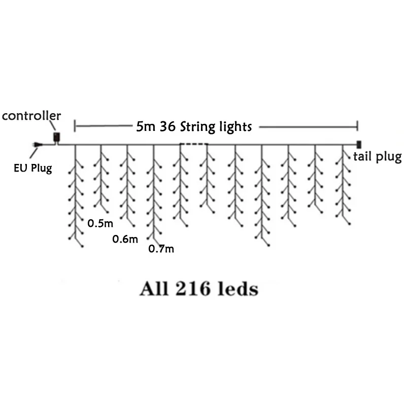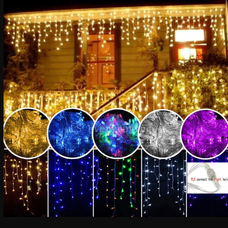 5 м-20 м Рождественская гирлянда, занавеска, светодиодная сосулька, струнные огни, Droop 0,6 м, уличная гирлянда на окно, наружное освещение, новый год 2022