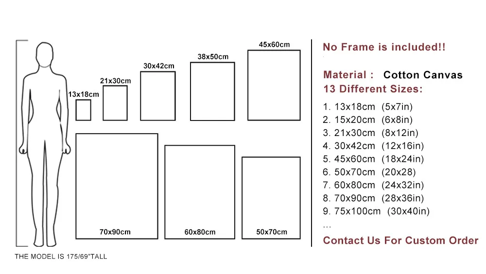 Материал Холщовый принт с льняным/хлопковым материалом высокого качества. Оценка качества Высокое качество aaa + Растягивается и в рамке Не растягивается (свернут в трубку) покупка: без рамки. Растягивается (обрамлен на спине, готов повесить из коробки) купить: с рамкой. КлиентУслуги Мы можем изготовить на заказ любой размер для вас, и мы также можем сделать печать на холсте на заказ, вам просто нужно отправить нам изображение с высоким разрешением. Материал Холст из 100% хлопка Доставка Способ доставки будет выбран как ниже. 1. Авиа-отправление Почты Китая 2. EMS Время доставки1. Авиа-отправление Почты Китая:Обычно 15 - 50 дней,