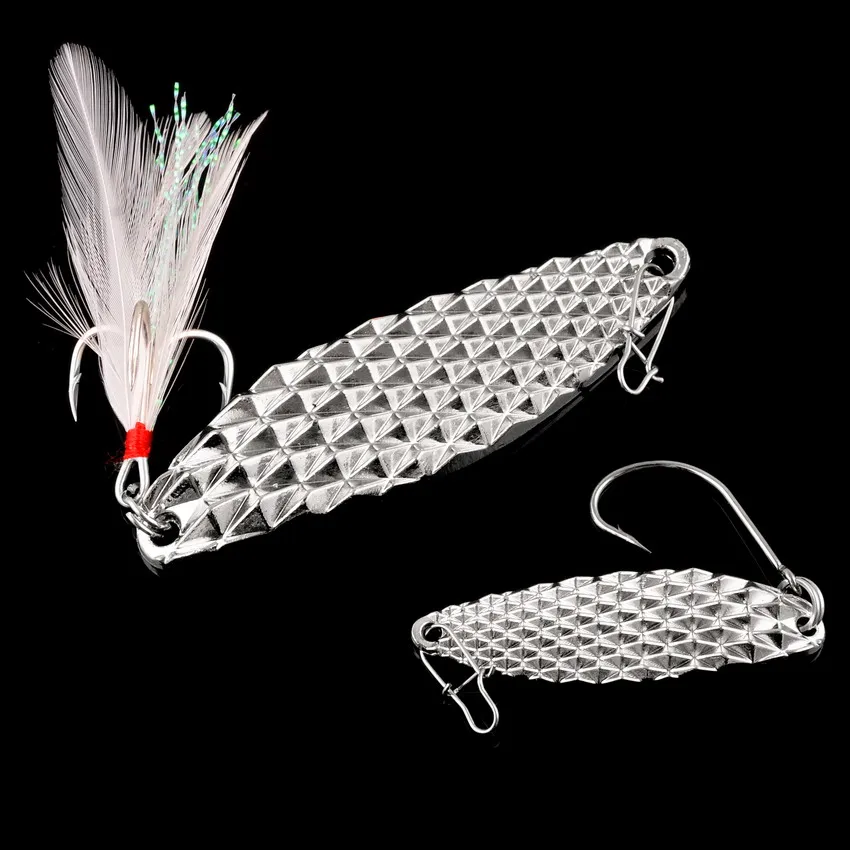 1 шт. металлическая блесна ложка, приманка для рыбной ловли, жесткие приманки с блестками, шумовая блестящая приманка с фотоэлементами7g 10g1 рыболовный крючок с пером20g