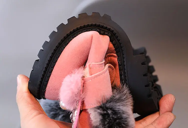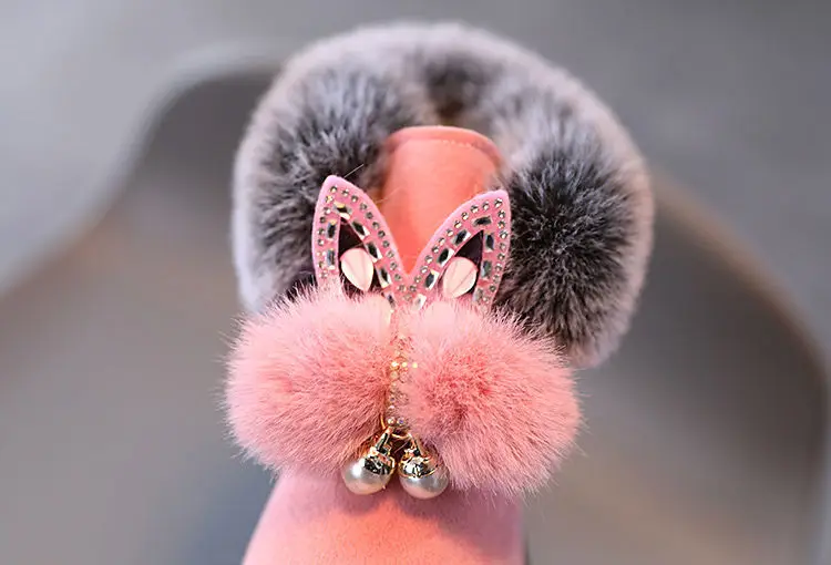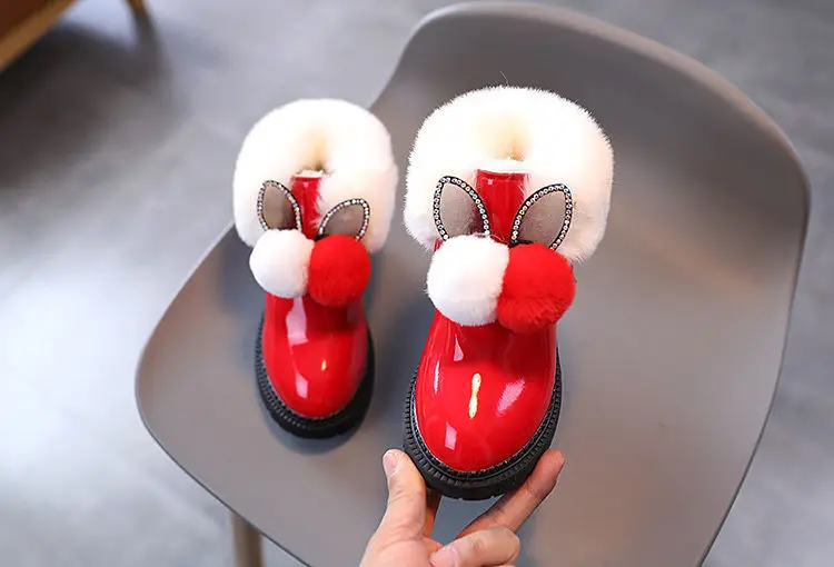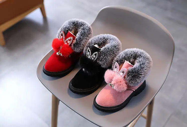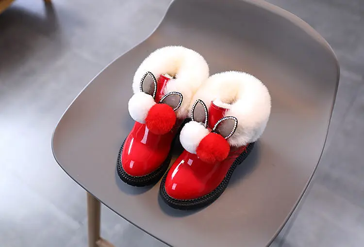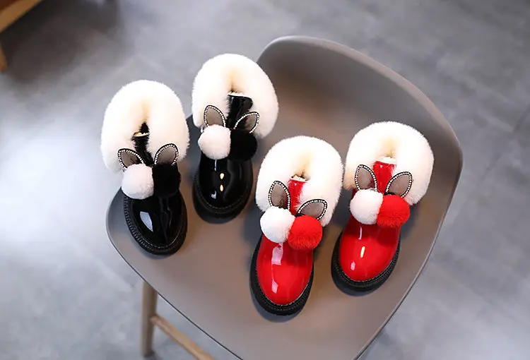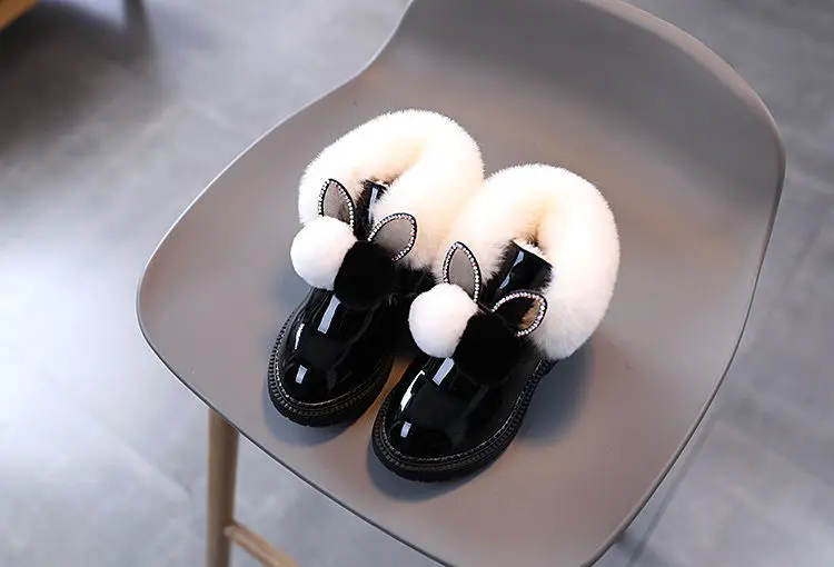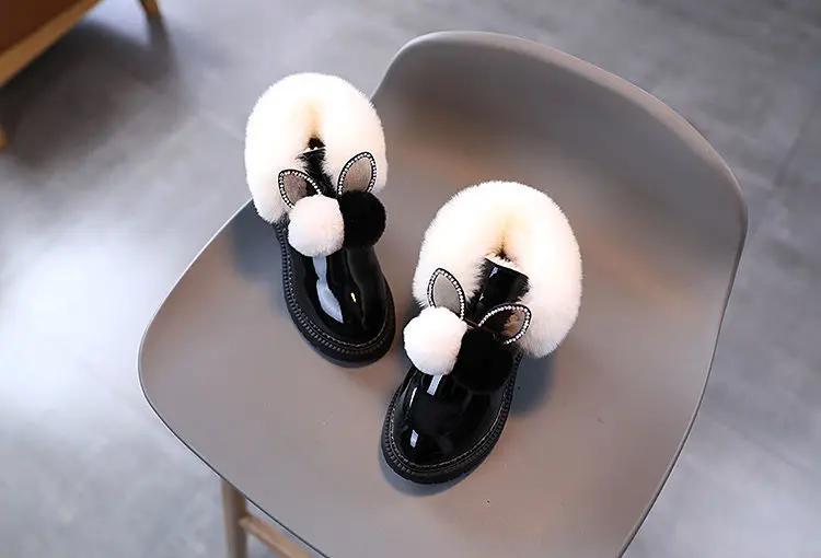 Теплые кожаные сапоги с узором кролика, размер 21-30, детские зимни...