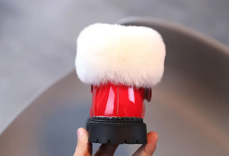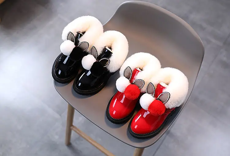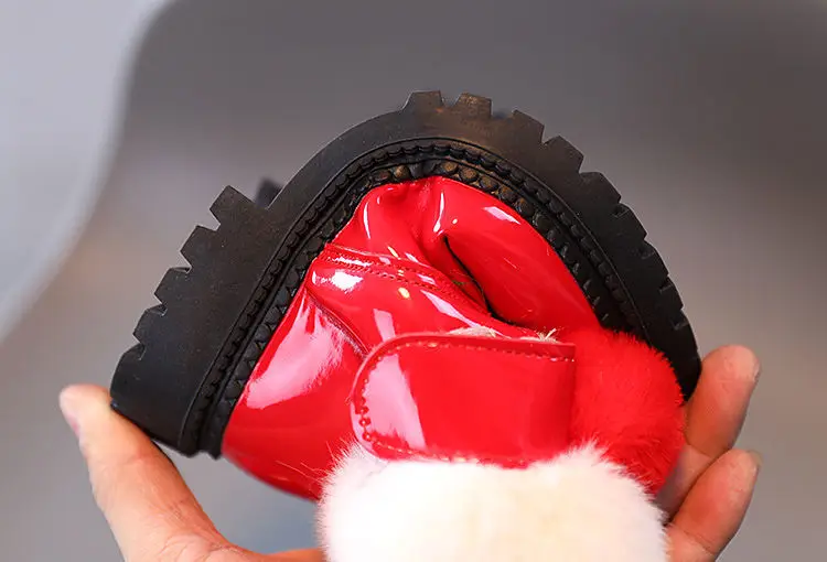 Милые детские ботинки из кроличьего меха для девочек, яркая кожа, л...