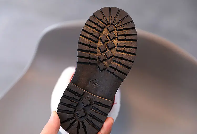 Зимние детские ботинки для маленьких девочек кожаные ботинки Martin плюшевые модные водонепроницаемые Нескользящие теплые детские милые зимние ботинки