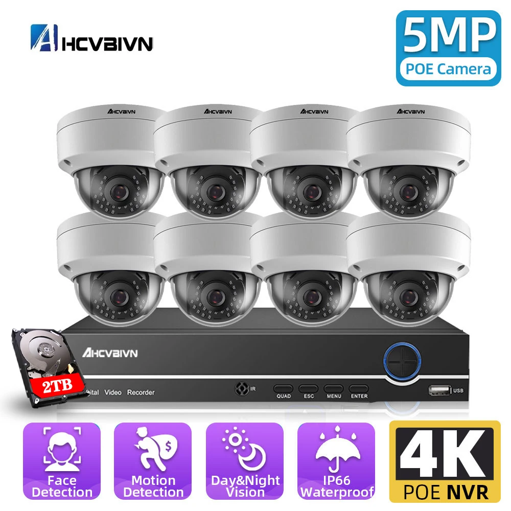 Купольная CCTV система безопасности 4CH 8CH 8MP POE NVR комплект 5MP распознавание лица Открытый POE аудио IP Камера Видеонаблюдения Набор 2CH 6CH