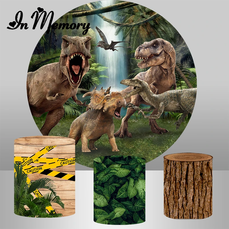 InMemory лес Юрского периода Динозавр круглый фон Обложка для мальчиков день рождения круг фон дерево зеленые листья Plinth обложки