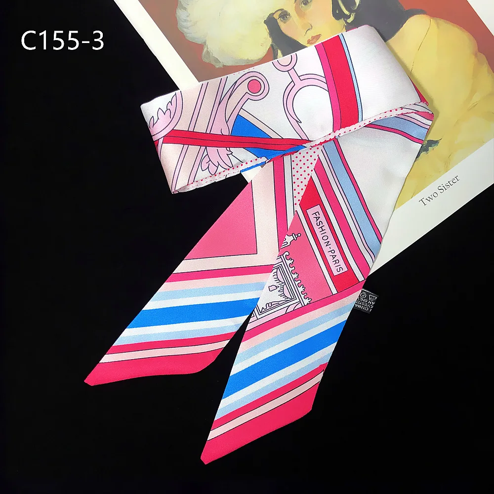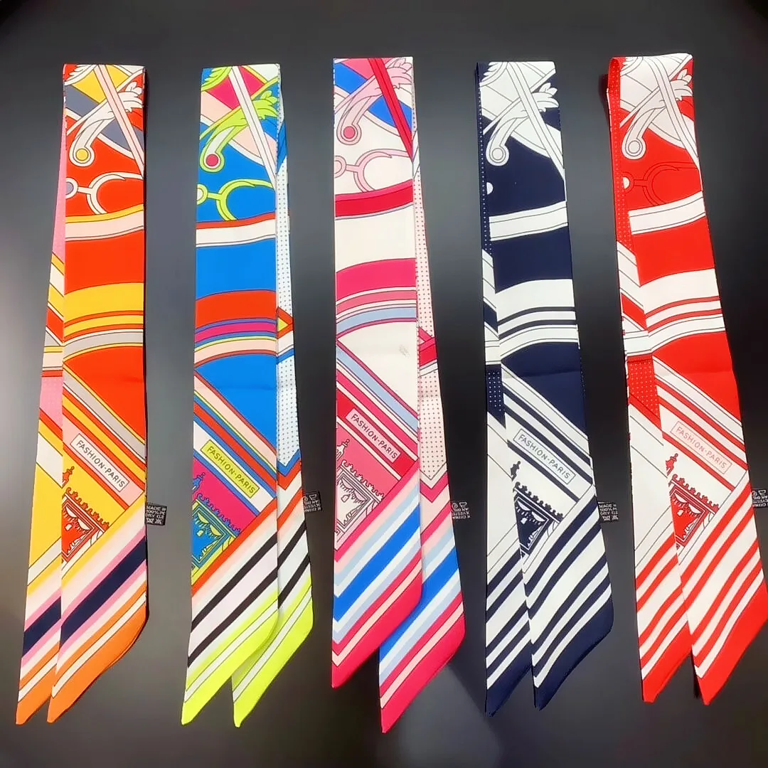 Бесплатная доставка, 95 см * 5 см, ремешок для сумки с буквенным принтом, шарф, Женский саржевый шелковый шарф, повязка на голову, длинные шарфы, аксессуары для сумок, лента