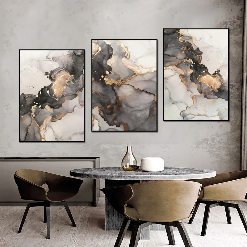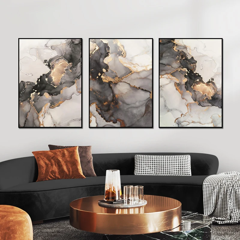 Современный абстрактный Черный Золотой роскошный постер мраморный холст с принтами картины чернила скандинавские настенные художественные украшения для гостиной