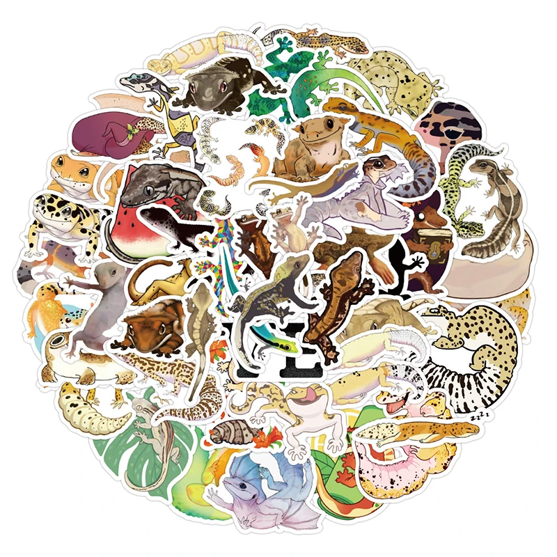 103050 шт.упак. Cute Gecko граффити Мультяшные наклейки с животными для багажа, Подарочная коробка, блокнот, шлем, наклейка, компьютер, холодильник