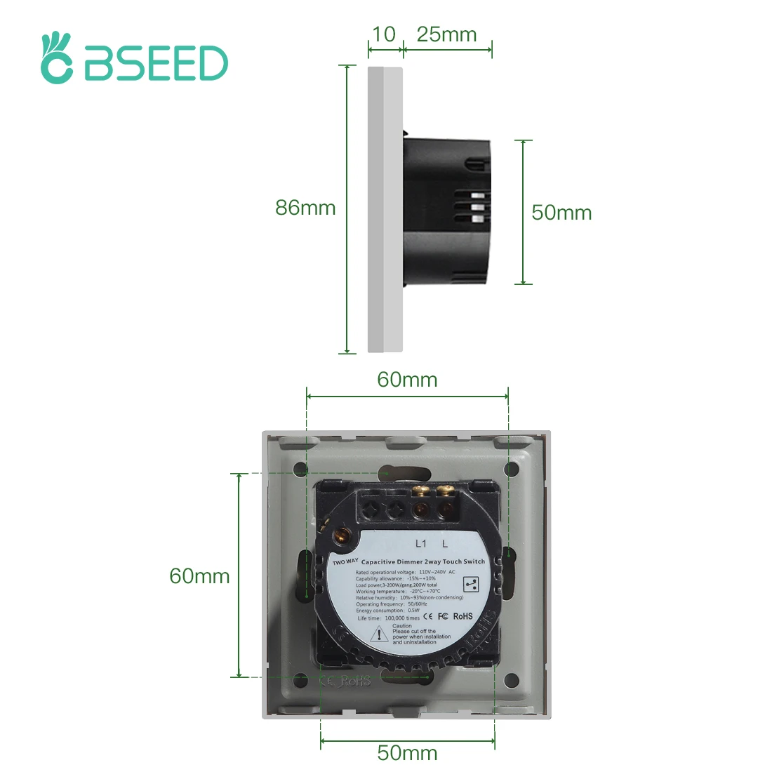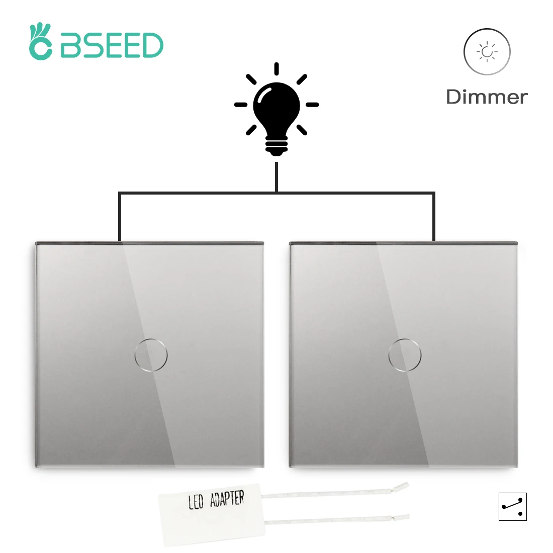 BSEED настенные диммеры 1/2Gang 2Way лестничный сенсорный светильник, переключатели, Хрустальная стеклянная панель, светодиодный светильник с подсветкой, стандарт ЕС, 2 упаковки