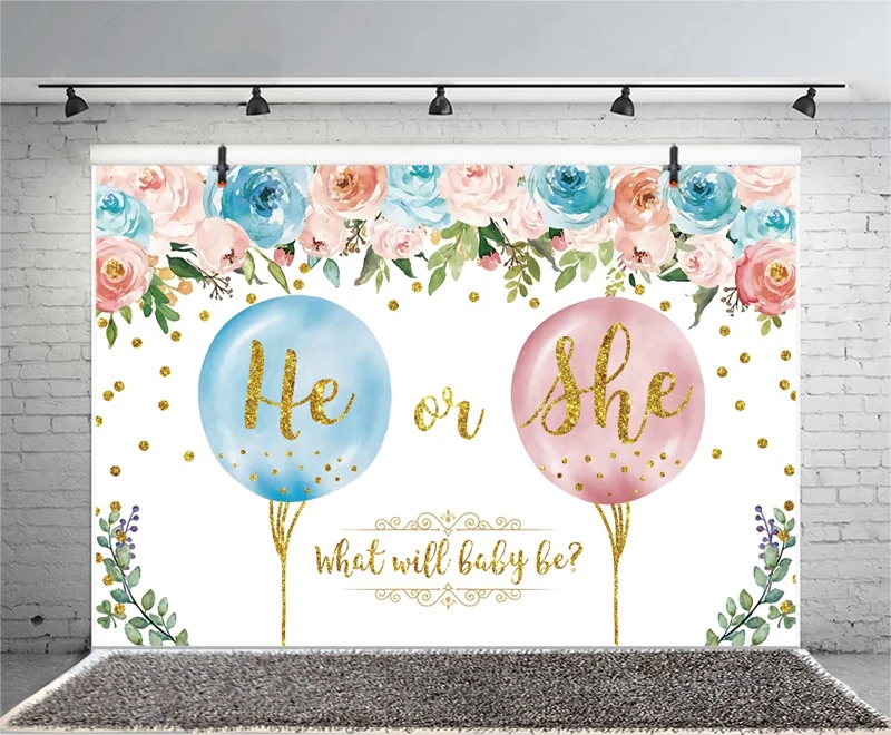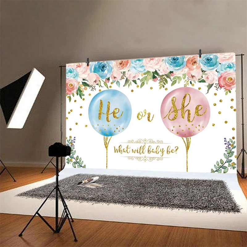 Фон для фотосъемки с изображением пола, вечеринки в честь Дня Рождения, вечеринки в честь рождения ребенка, мальчика или девочки, воздушный шар, цветок, фон для фотографирования, баннер, украшение