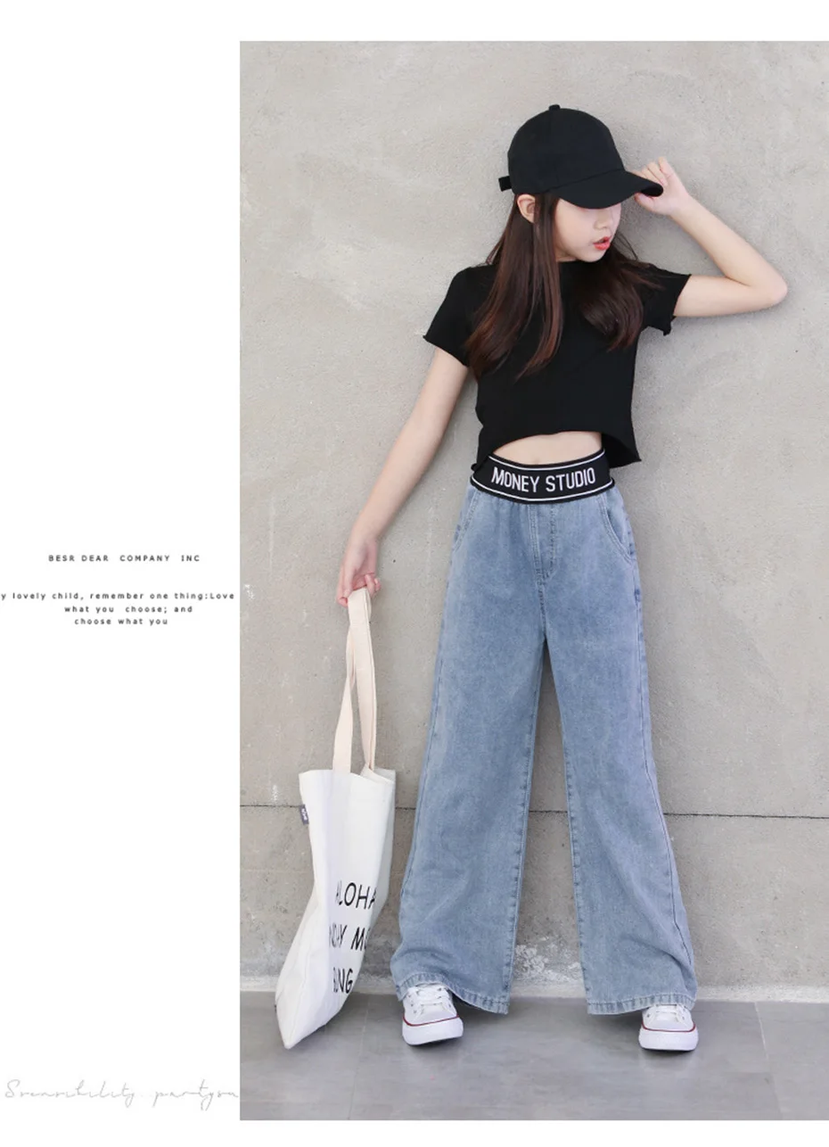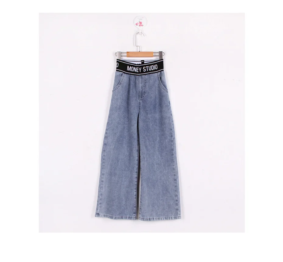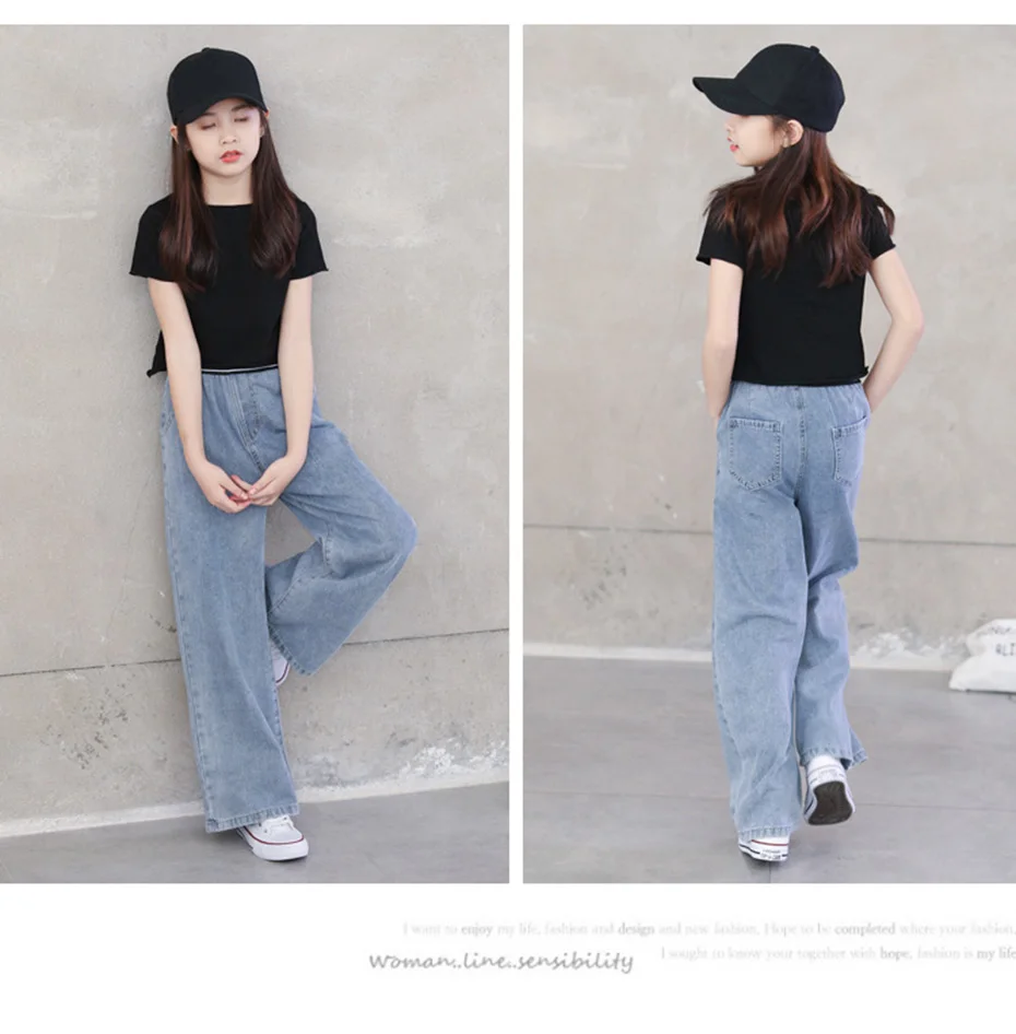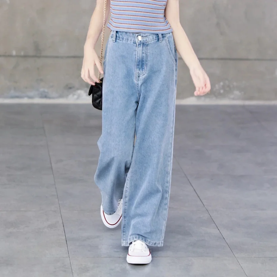 Джинсы для девочек-подростков, на весну-осень, повседневные Модные свободные синие детские Широкие штаны, брюки для школы, на возраст 6, 8, 10, 12 лет, 2021