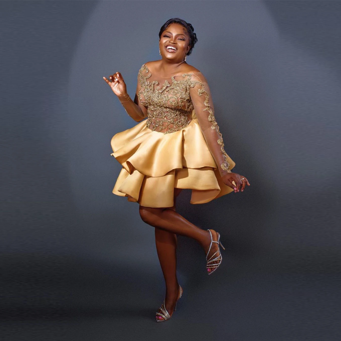 Черные короткие коктейльные платья для девушек, Многоярусное Прозрачное платье с глубоким круглым вырезом, длинными рукавами, аппликацией, платье для выпускного вечера Aso Ebi, женское платье для вечерние