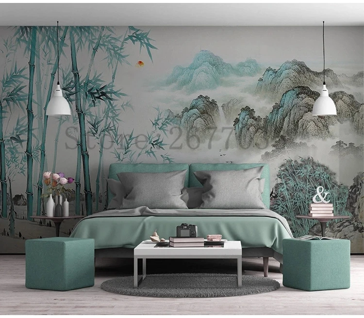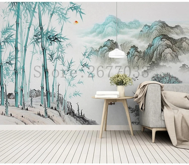 Пользовательское настенное покрытие, абстрактные чернила, пейзаж, бамбуковые фото обои для гостиной, спальни, фон для стены, домашний декор, свежий