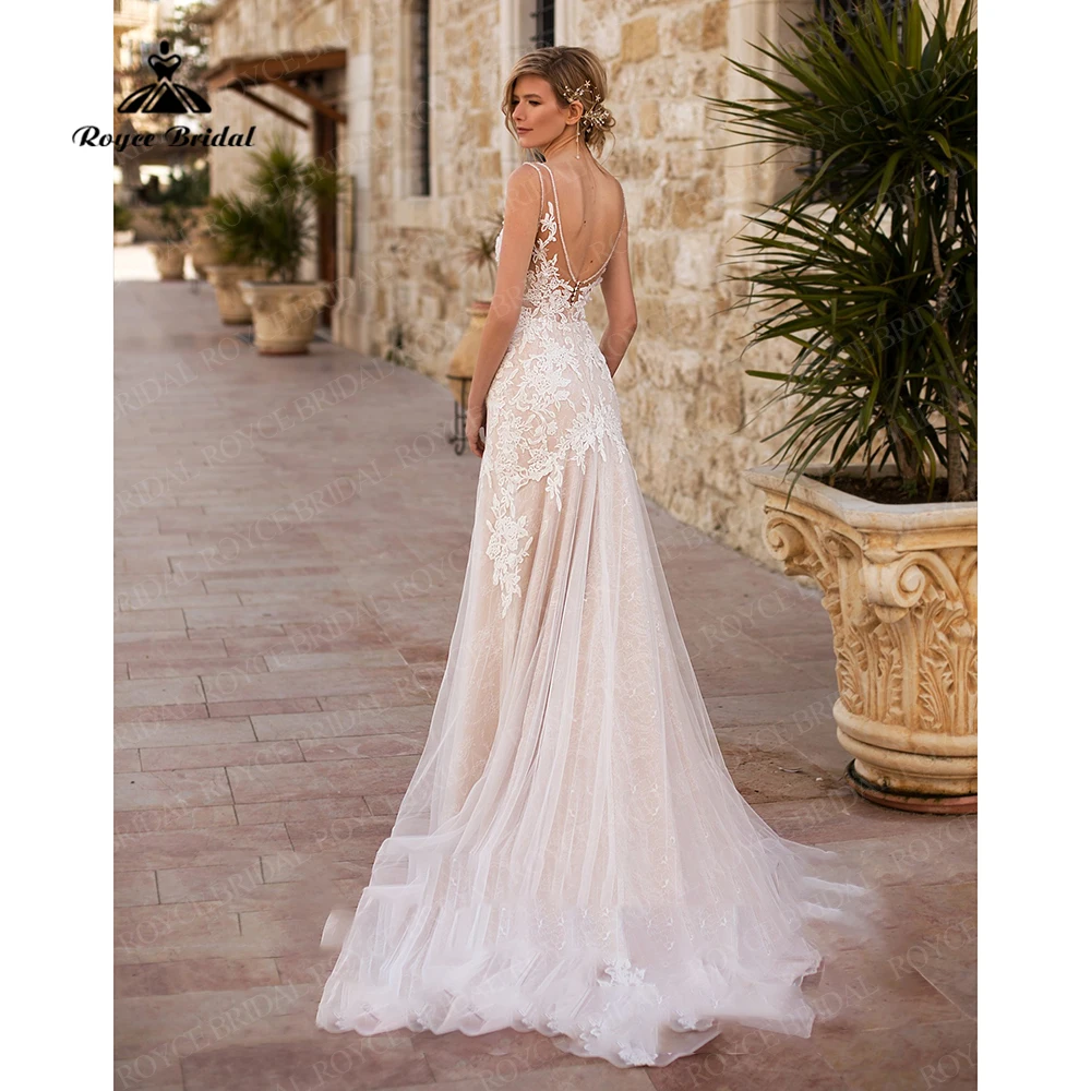 Современное кружевное свадебное платье-русалка, женское платье с V-образным вырезом без рукавов в стиле бохо, свадебные платья с юбкой-годе, свадебное платье