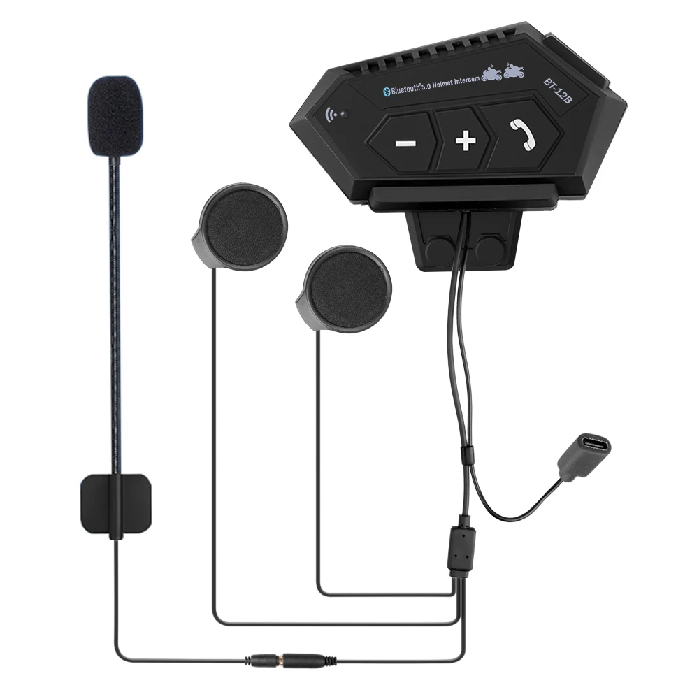 Аккумуляторная батарея 2000 мАч, устройство связи Bluetooth 5,0 для мотоциклетного шлема, телефон с громкой связью для полногополовинного шлема PK BT-12B12S