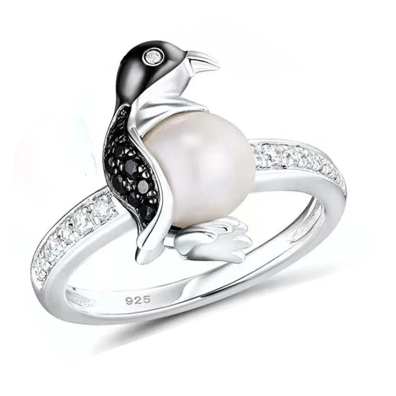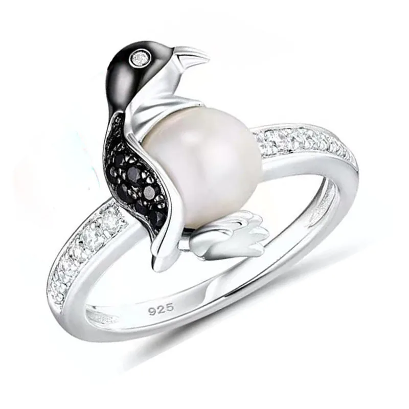 Mifeiya креативное милое черные пингвины инкрустированное животным искусственное белое жемчужное металлическое кольцо для женщин ювелирные изделия Вечерние