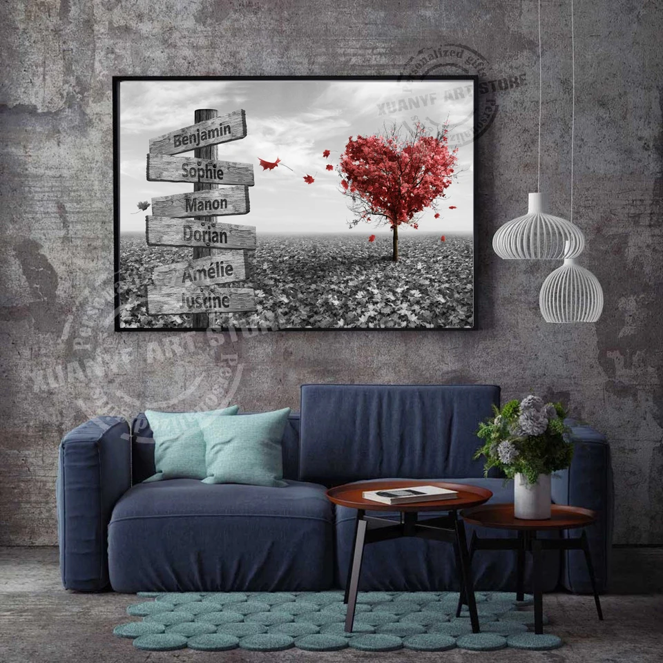 Индивидуальная Картина на холсте с изображением влюбленных деревьев, индивидуальный плакат и печать, персонализированные настенные картины, подарки на годовщину, семейный Декор