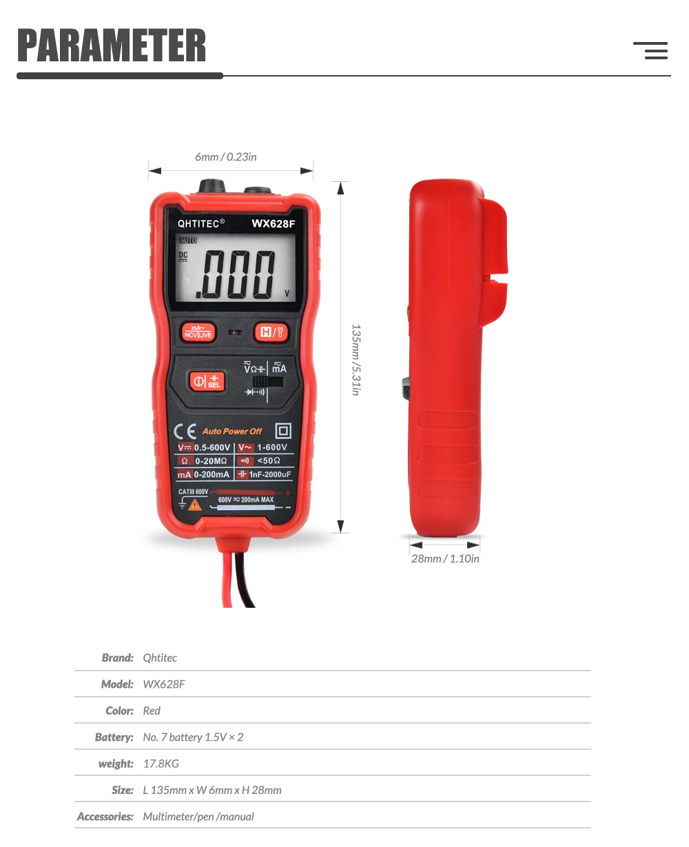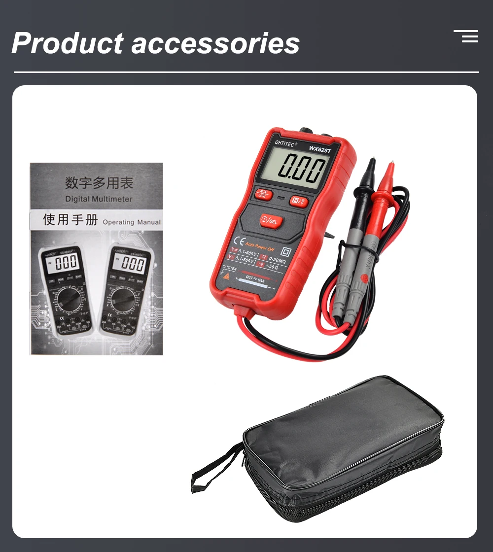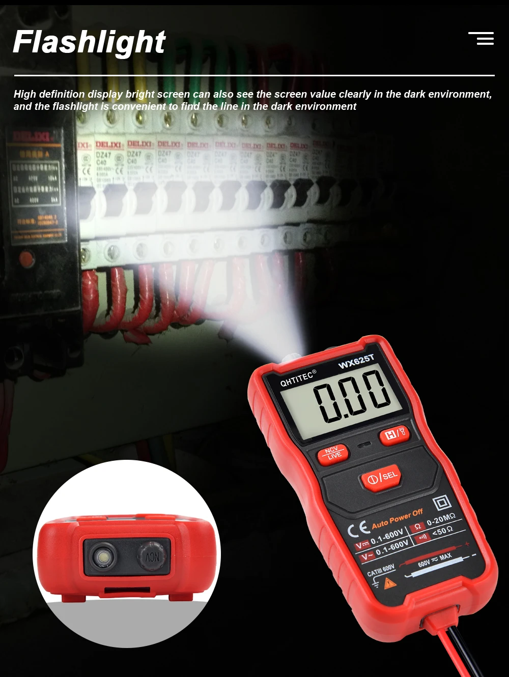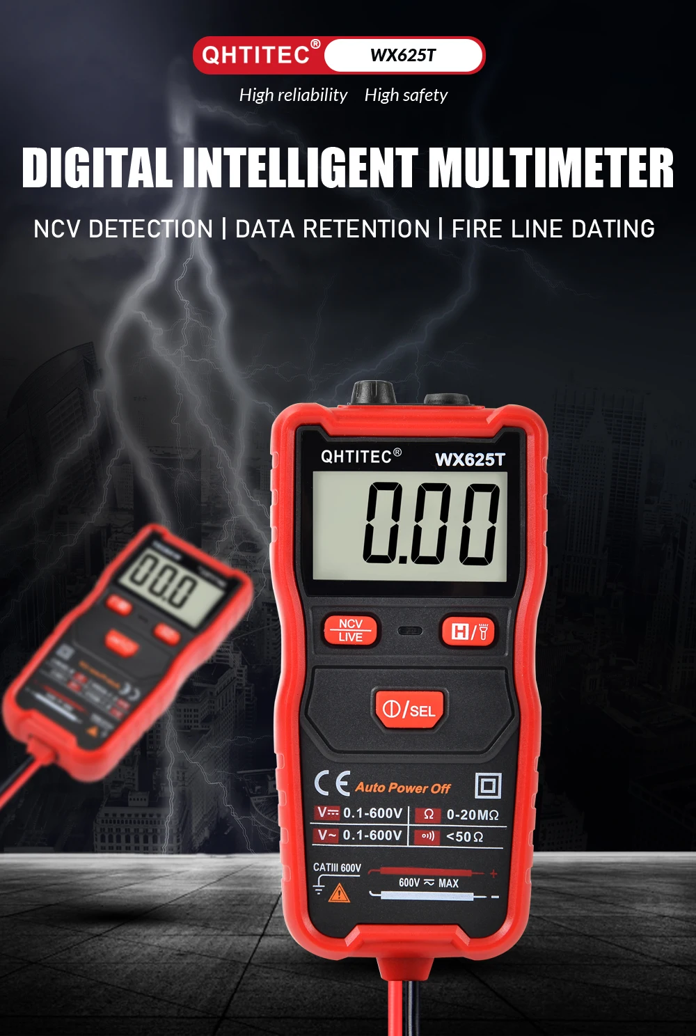 Цифровой мультиметр QHTITEC 625T с ЖК-дисплеем, автоматический выбор диапазона напряжения переменногопостоянного тока, портативный точный дисплей, мультиметр с испытательной линией