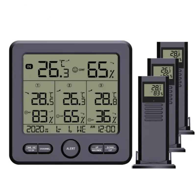 1. Может отображать три канала и температуру в помещении и влажность в то же время, трехуровневый дисплей для комфортного использования в помещении